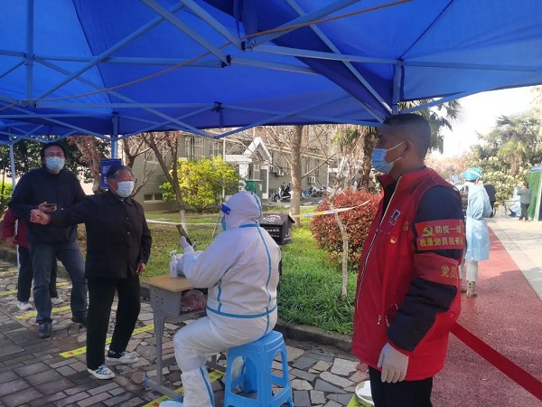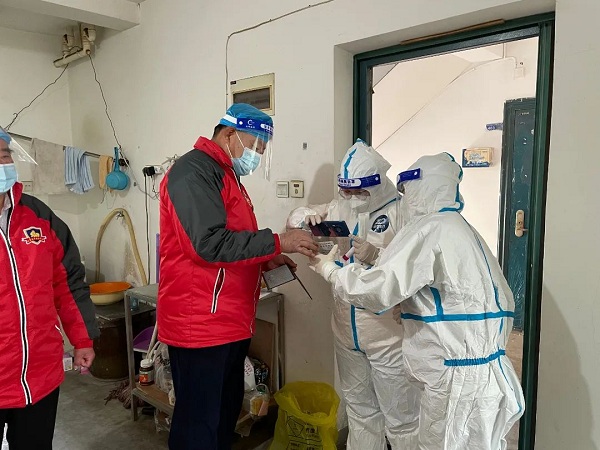 作为听竹社区离退休党支部书记,徐永摩带领离退休党支部志愿者主动承担起上门检测的任务,带领流动检测队,为辖区内不方便出门的人员上门做核酸检测。