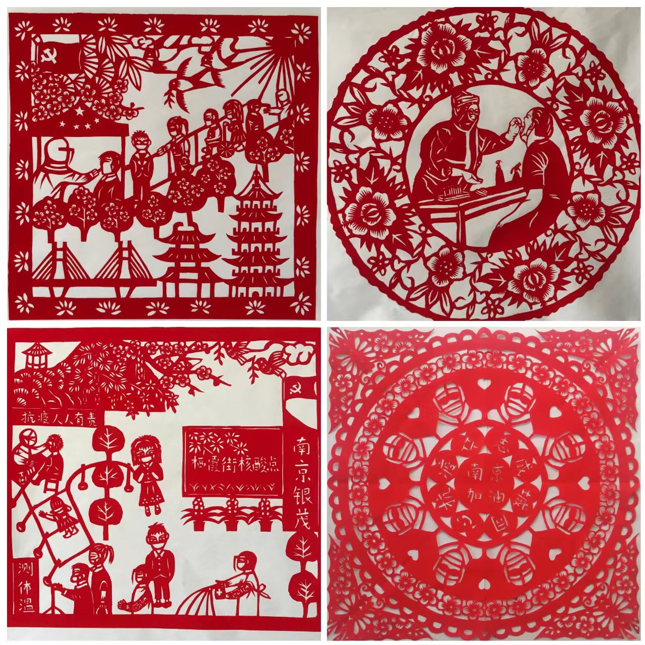 一张红纸尽显使命情怀,一把剪刀剪出抗疫颂歌。防控疫情是头等大事,切断传播源迫在眉睫,在市区街道各级政府的统一部署下,南京市民齐心投入到抗疫行列中。在疫情防控中涌现许多可歌可泣的感人事迹与众志成城抗击疫情的英勇壮举,有冲锋在前沿的医护工作者,有隔离点的“守护者”,有为封控区域居民送温暖的热心人,还有各个检测点的志愿者……无不体现出面对疫情市民同舟共济、同心抗疫的精神风貌!