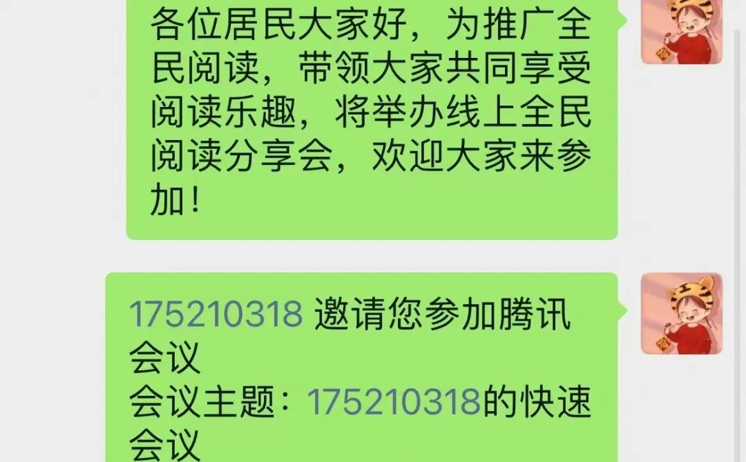 在配合做好疫情防控的同时,社区工作人员也在思考丰富居民生活的路径,结合疫情以来不断发展成熟的线上活动形式,聚焦部分居民受疫情影响出现的低迷情绪,考虑到读书是减轻压力、净化心神的良好方法,综合考量最终选择通过线上方式开展阅读交流会,为居民们分享好的读书方法,做好书推荐,让居民在读书中平静内心、增长见识。