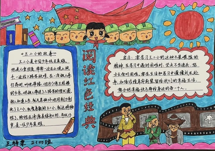 活动有亲子共读、一字之师、传扬红色故事、送你阅读小锦囊等环节。亲子共读邀请家长和孩子共读经典儿童文学作品;“一字之师”是以一个汉字的发展演变为主题,介绍汉字背后的有趣故事与历史;红色故事是孩子在阅读王红色著作后,以故事为主题,绘制手抄报,图文并茂,向其他同学介绍;阅读小锦囊是让孩子们写下自己阅读的小妙招,再用绘画剪纸等形式精美装饰,做成美丽实用的锦囊卡,留给学弟学妹。