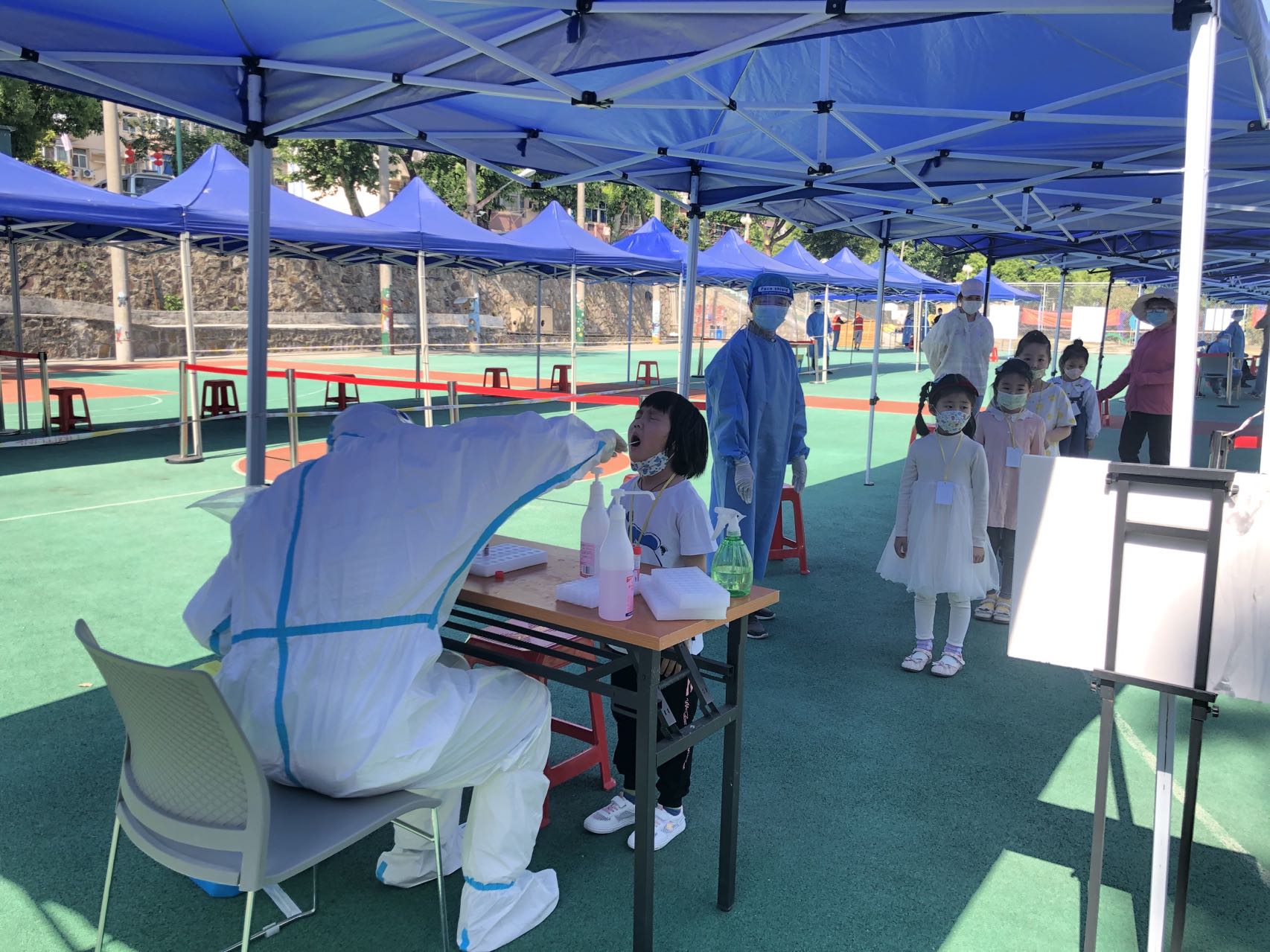 本轮核酸检测中,孩子们都带着自己的身份码,在老党员志愿者和工作人员的指引下排队等候、扫描身份码、核酸采样,整个现场井然有序。
