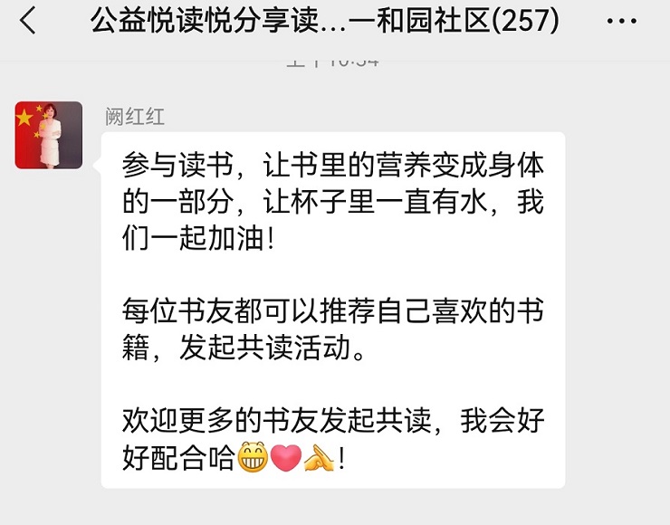 生活里没有书籍,就好像没有阳光;智慧里没有书籍,就好像鸟儿没有翅膀。为大力倡导全民阅读的理念,进一步营造读书明理的社区文明风尚。5月11日,仙林街道和园社区,晚上19:00--19:30在微信群开展线上读书分享活动。