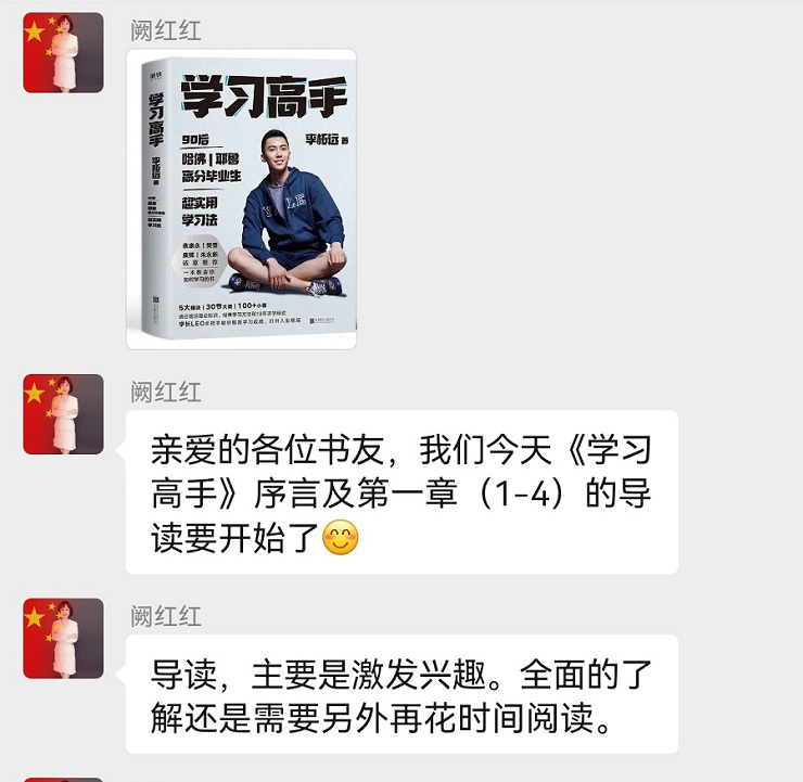 活动由线上导读志愿者阙红红带领大家一起读《学习高手》这本书,阙老师说,“参与读书,让书里的营养变成身体的一部分,让杯子里一直有水。”居民朋友们也表示,此类活动非常好,希望多多参与。