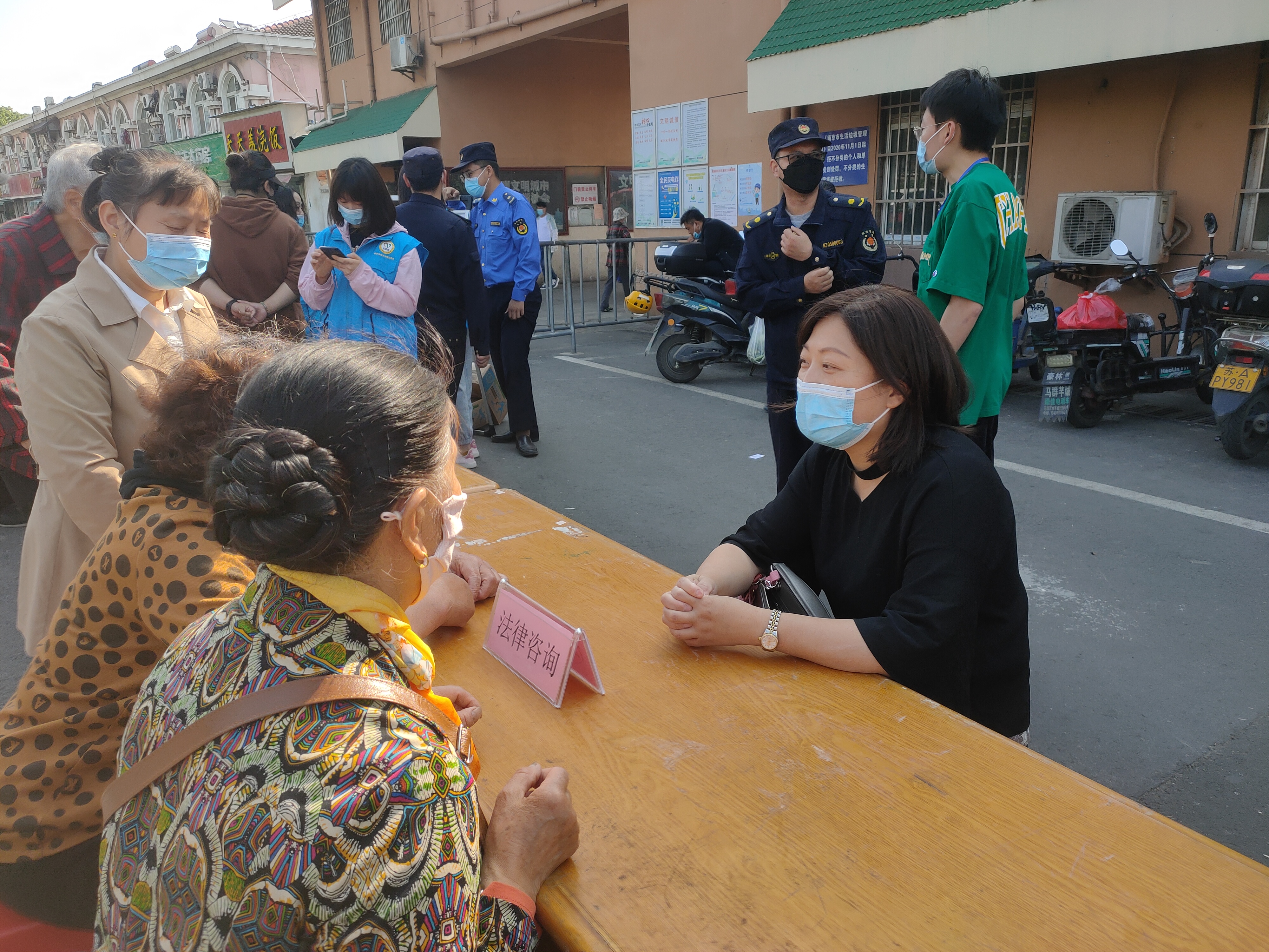 2022年5月16日,阳光明媚春风和煦,南炼新村社区农贸市场小吃广场热闹非凡,因为南炼新村社区居民学校今天上午在这集中开展法律服务进广场咨询宣传活动,吸引了很多前来买菜或者吃早餐的居民。