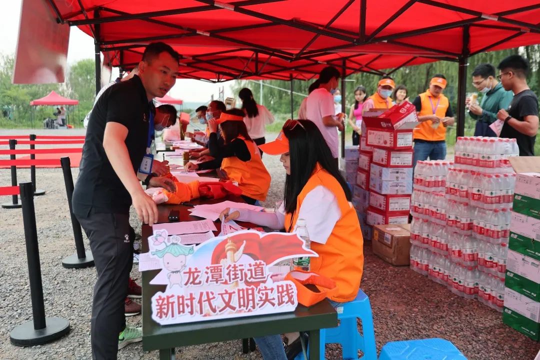 为保障活动安全顺利开展,现场设置了健康码和核酸报告查验点、救护点及赛途中的能量补给点,龙潭街道新时代文明实践志愿者、青年志愿者开展志愿服务工作。