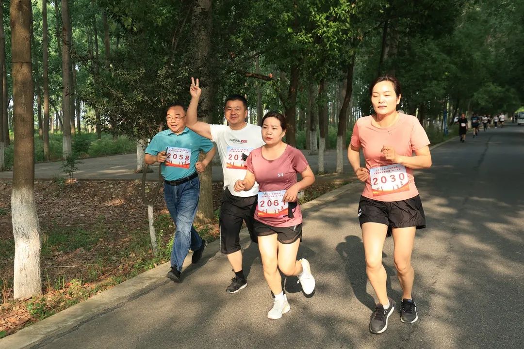 大家迎着朝阳,伴着荷香,冲出起跑线,徜徉在四好农路的绿色步道。跑道上,参赛队员奋力拼搏、保持节奏。跑道两旁,观众们加油呐喊,挥手助威。