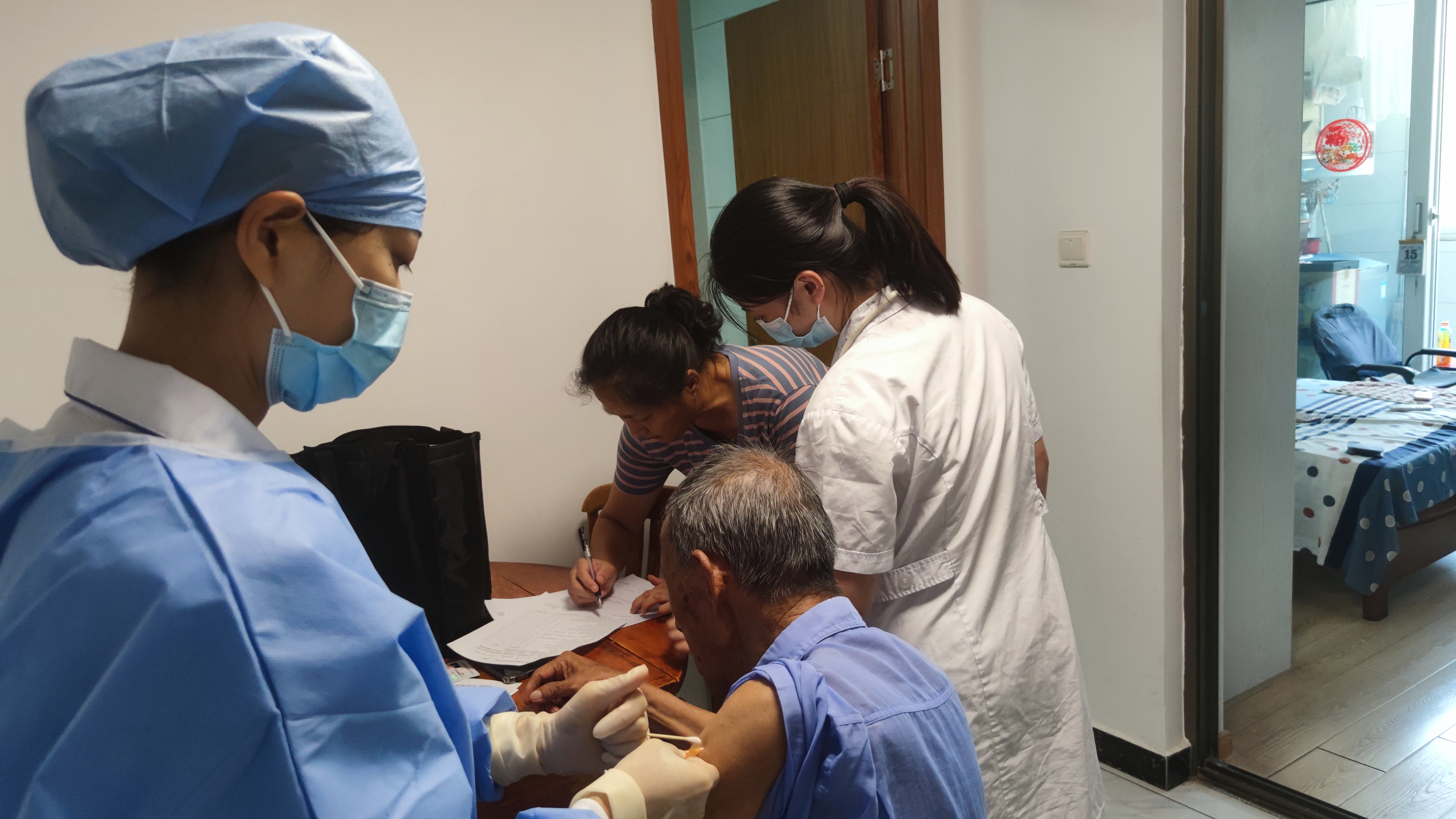 为大力推进60岁以上老人新冠疫苗接种工作,让符合条件的老人实现“应接尽接”,保障人民群众生命健康和公共卫生安全,筑牢全民健康防线。8月15日至16日,栖霞街道石埠桥社区联合栖霞社区卫生服务中心在石埠湾花园小区内开展疫苗接种入户动员活动,2天内,已有12位老人接种疫苗。