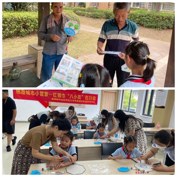 活动伊始,小队员们齐聚会议室,重温社会主义核心价值观,学习文明典范城市的创建要求,聆听着社区网格员的讲解,少先队员们将以昂扬的面貌、积极的姿态助力全国文明典范城市的创建工作,展现新时代少先队员城市小主人的风采。随后,网格员为小队员分发了颜料和空白团扇,小队员纷纷以不同的方式绘制了自己对文明典范城市创建的理解,有的绘画了垃圾分类相关图案,有的绘制了保护环境。绘制结束后,小队员们就外出行动啦。小队员们化身红领巾宣传员和讲解员,他们拿起手中的宣传单和亲手绘制的宣传扇,向社区中居民宣讲南京正在创建全国文明典范城市,文明典范城市的创建,需要所有人一起参与,共同努力,从而让我们的城市更加美好。大家听了队员们的宣讲,纷纷点头称是,充满童趣的宣传扇更是为炎夏送去一缕清凉,获得了居民们的高度认可和好评。最后,小队员在网格员的带领下前往环保屋学习垃圾分类知识,随后,分组进行清理垃圾,开展垃圾分类活动,人人争当红领巾环保员和清洁员。小队员们以自身的行动,带动身边的人一起增强环保素养和实践能力,培养良好的环境道德和行为规范;以文明的言谈举止,影响身边的家人和朋友,从自身做起,从小处着手,争做文明市民。