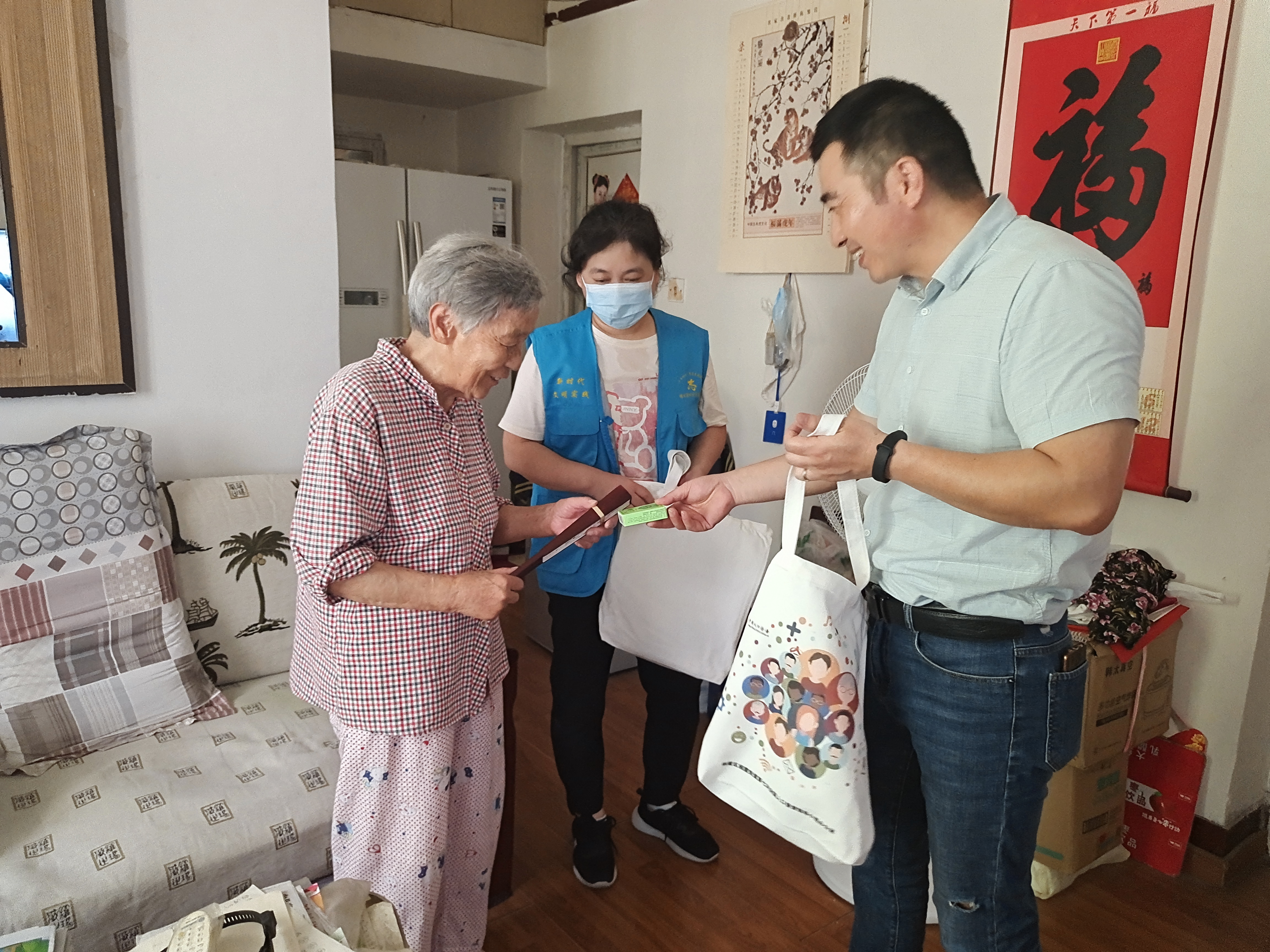 工作人员带着慰问品逐一走访独居老人家中,为他们送上扇子、花露水等防暑降温物品,叮嘱老人要做好避暑措施,尽量减少外出;同时,工作人员还询问了老人们的身体健康状况,向他们宣传健康常识,注意饮食卫生。