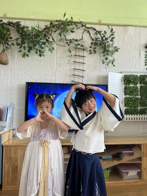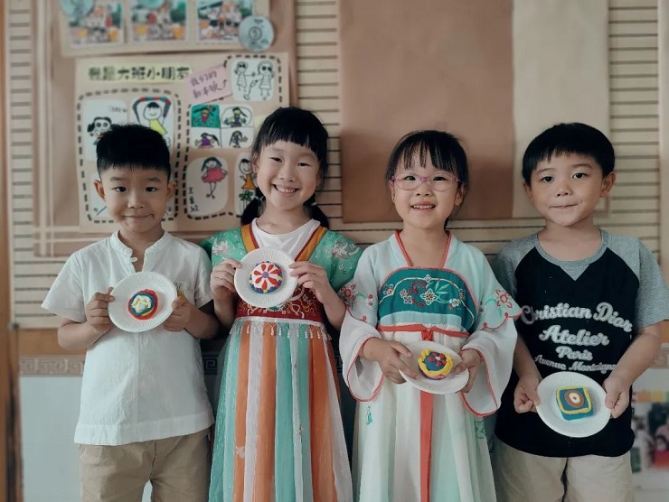 老师带领小朋友们制作了精美的花灯、搭建了嫦娥奔月的场景、设计着各式各样的月饼。还有身穿汉服的小朋友,和老师们一起“做”中秋、“话”中秋,大家欢聚一堂,感受到了节日的氛围。