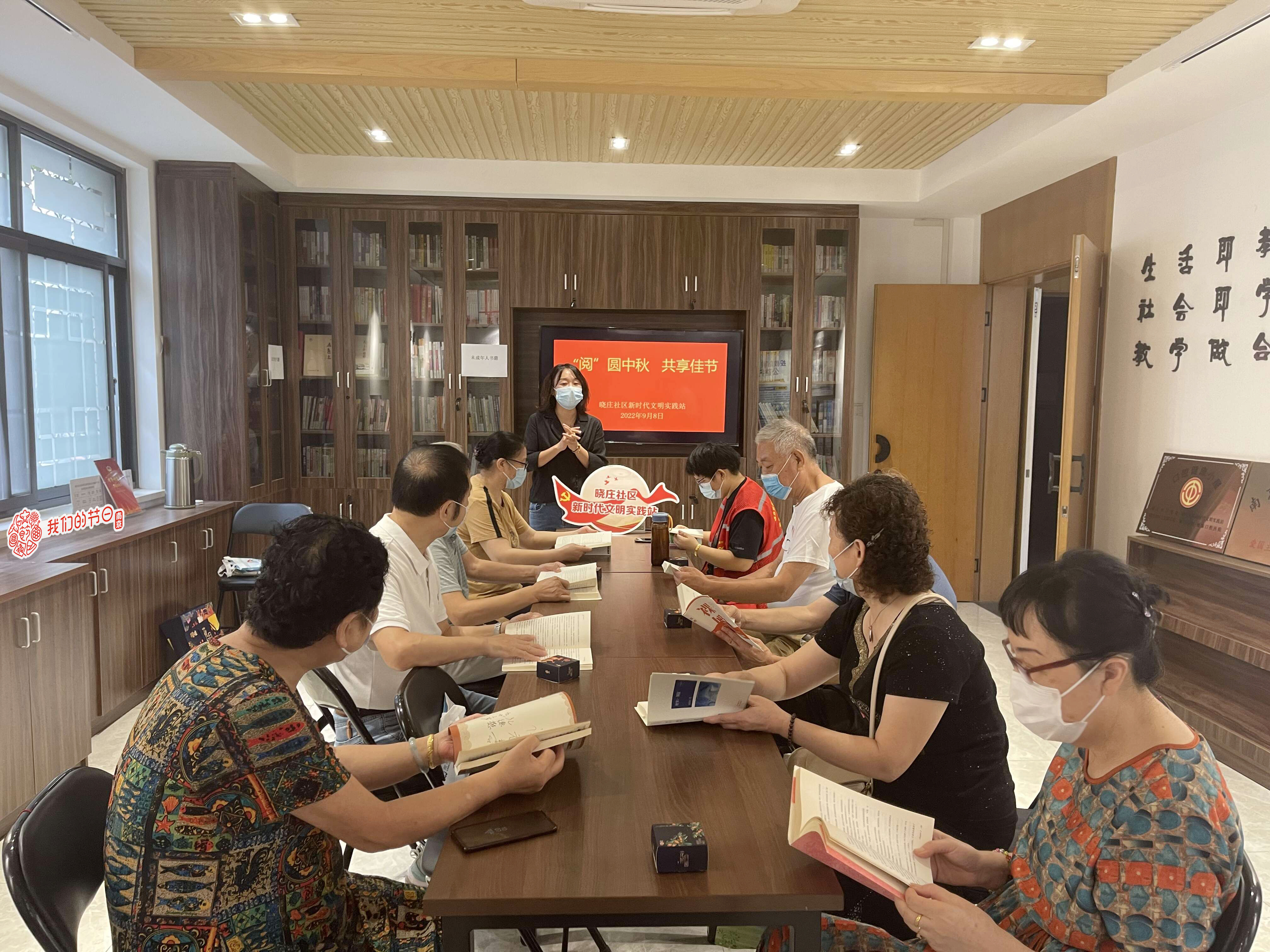 中秋佳节来临之际,为进一步带领居民感受中华传统文化的魅力,丰富社区的文化底蕴,提高辖区居民的思想文化素质。9月8日,晓庄社区新时代文明实践站以“阅”圆中秋,共享佳节为主题开展中秋阅读活动,邀请社区党员和居民代表一起,提前度过别样中秋。