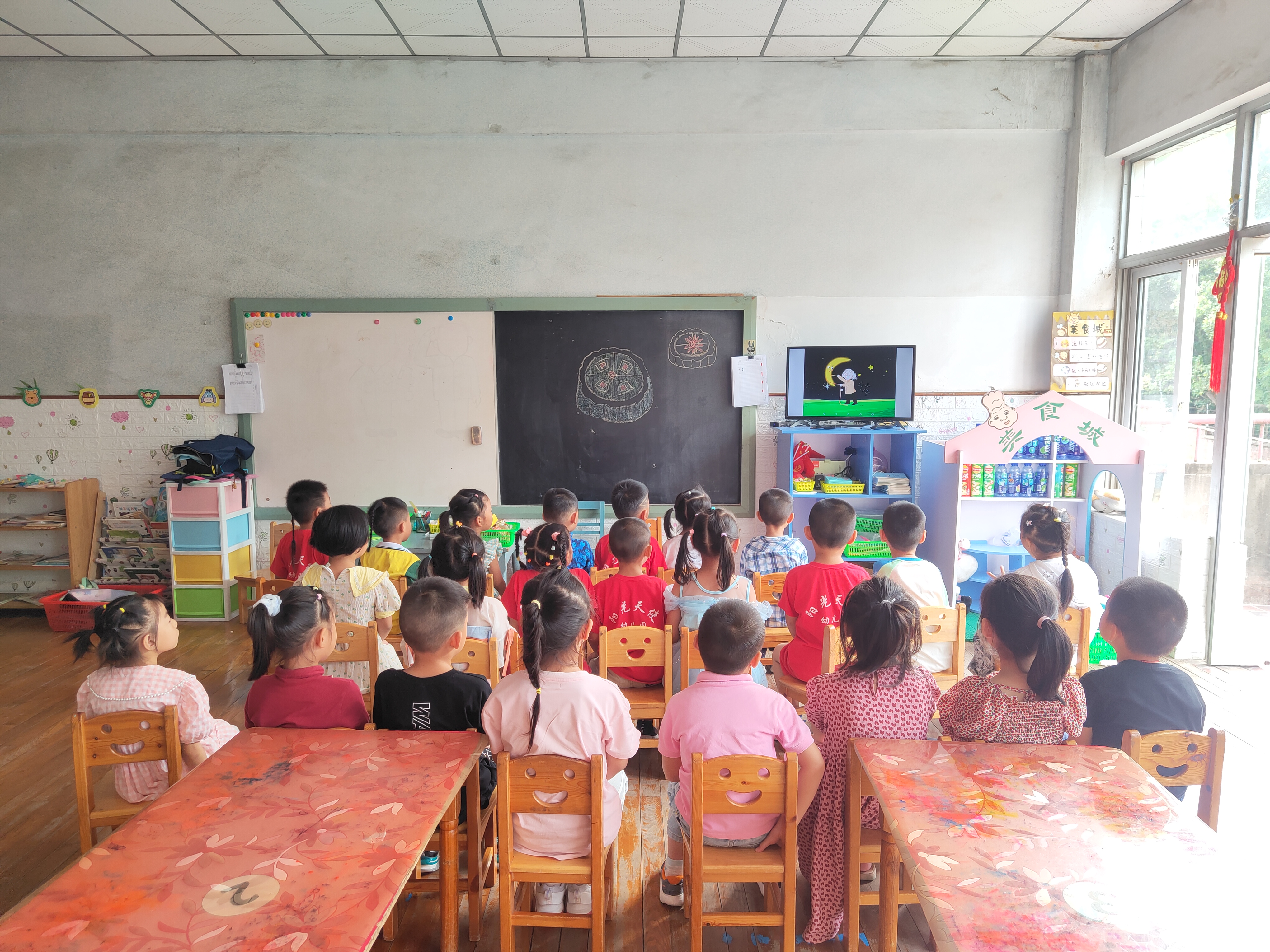 9月9日,栖化新村社区居民学校联合南京阳光天使幼儿园开展“少儿画月饼”活动。