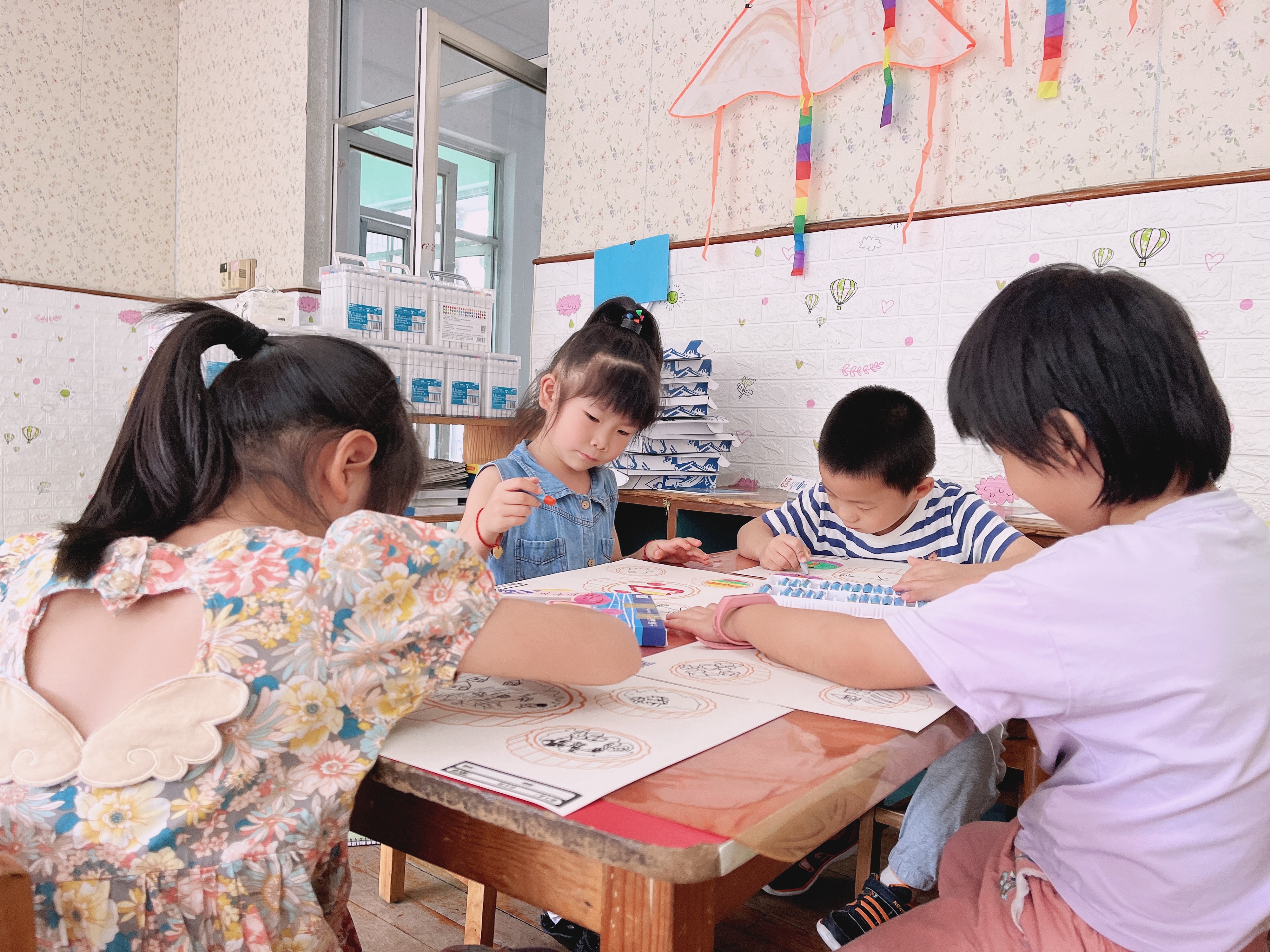 老师先引导少儿畅谈自己想做什么样的“月饼”,并从月饼的颜色、形状、图案等方面进行引导。随后,播放《中秋月儿圆》教学资源,带领少儿一同了解月亮变化的过程。最后,鼓励大家用水彩笔,画出不同颜色花纹的月饼,体验节日的快乐。