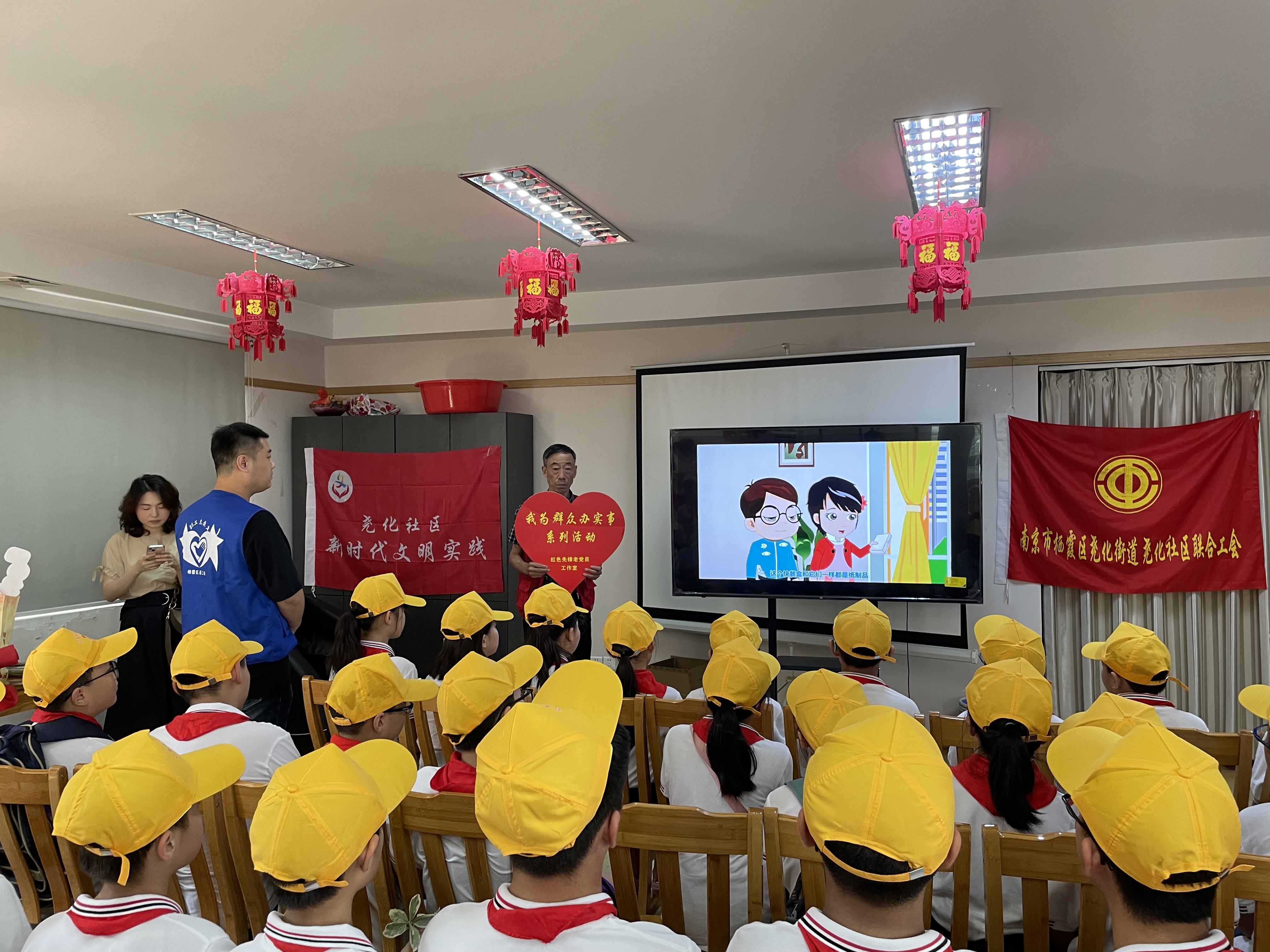 近日,为进一步推进南京市全国文明典范城市创建,尧化社区团总支携手社区新时代文明实践站、社区工会积极配合团区委、区少工委深入推动“栖霞城市小管家”项目,邀请栖霞实验小学尧化门街校区的少先队员走进社区,广泛开展网格员、宣传员、环保员等“八小员”行动,让红领巾成为文明城市建设中最靓丽的“那抹红”。