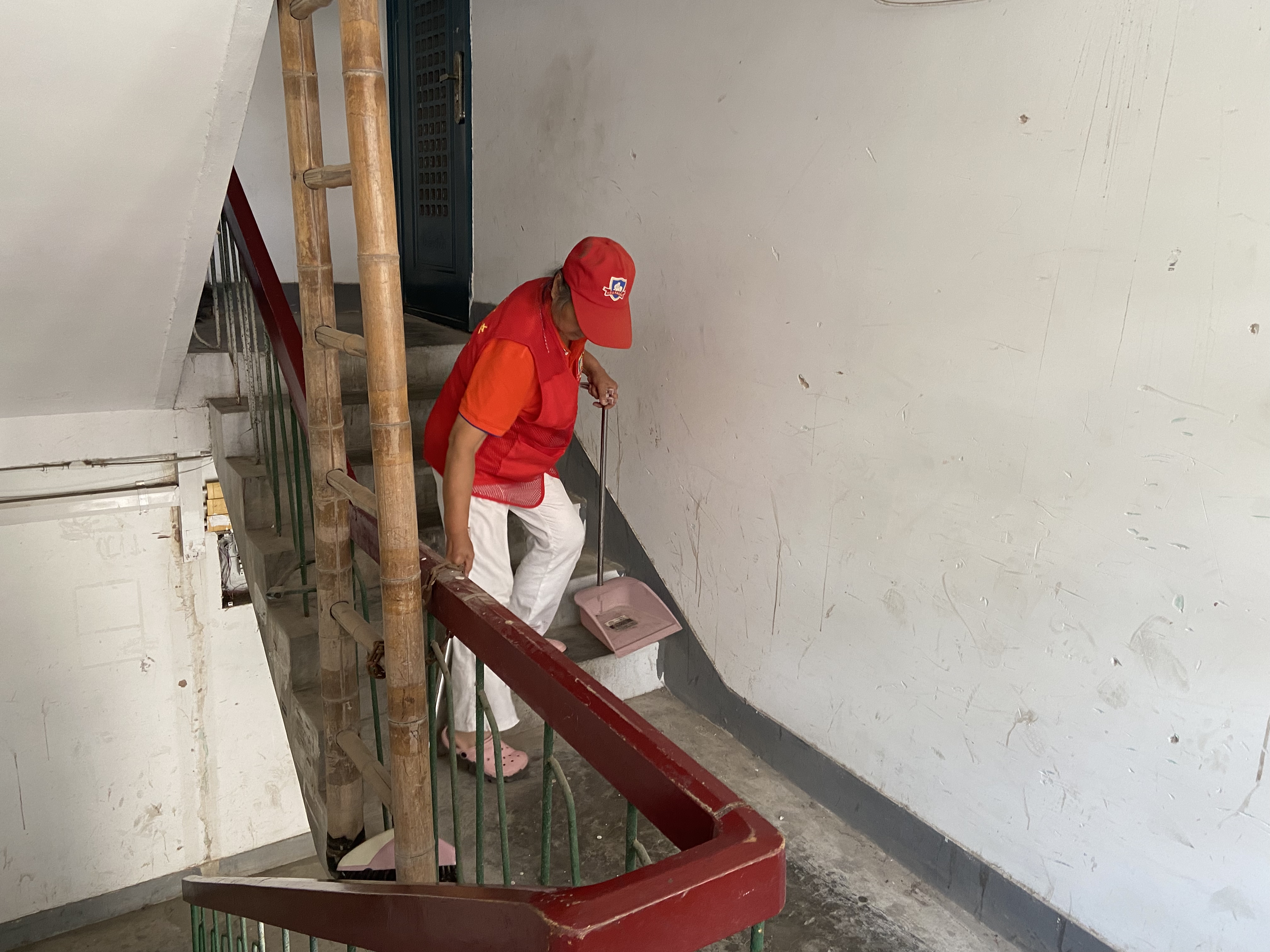 老党员们领取工具后,来到小区内,三人一组开始清扫楼道,清理堆积物。大家不怕脏、不怕累,清理完楼道又主动帮助辖区腿脚不便的老人更换纱门,并且和老人拉家常:“遇到什么不方便的,就打电话叫我们。”老人感激地握紧党员的手。
