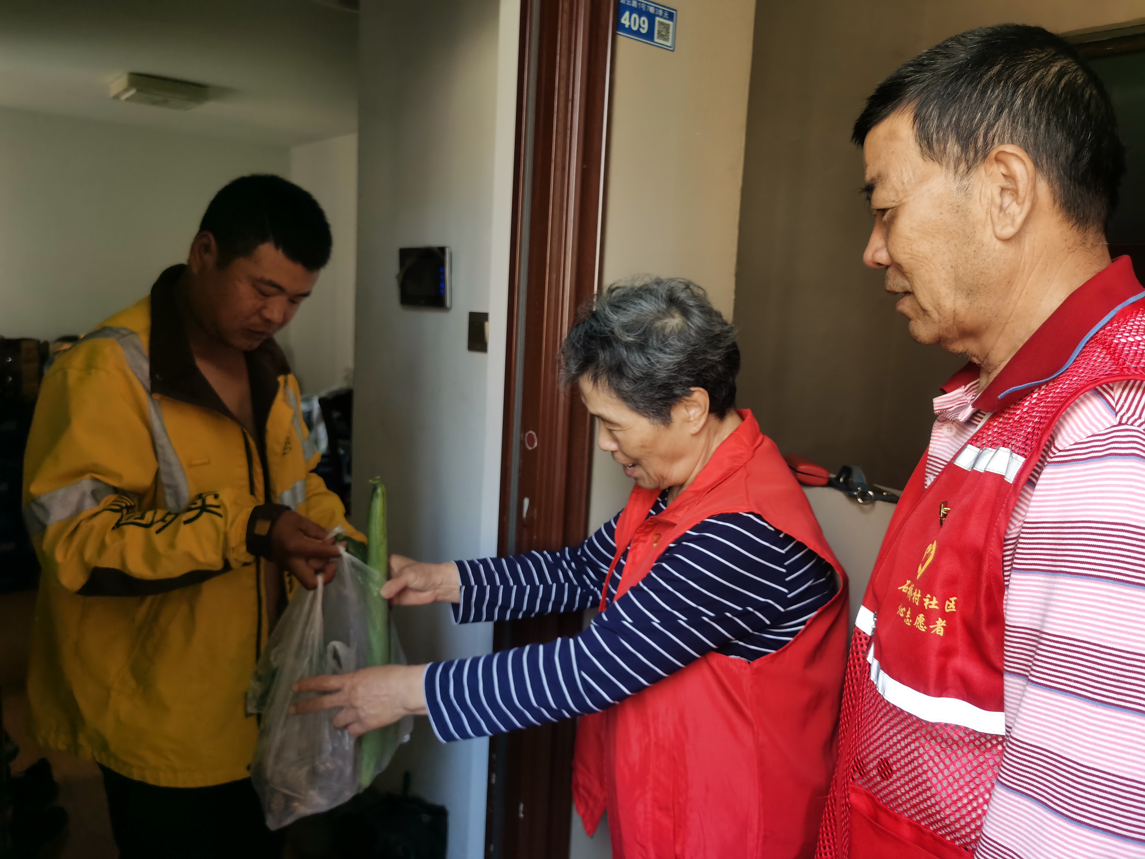 考虑到新就业群体的工作强度高、压力大的现状,石埠桥社区党员楼栋长戴桂珍主动将自己家种的蔬菜打包送给了外卖员、快递员和货车司机。戴桂珍说,“现在年轻人压力都很大,希望我们送的一点小东西能够让他们感到暖心舒心,更有动力去工作!”收到老党员浓浓关怀的薛鹏很是感激,“社区的服务十分暖心,今后也会主动为社区居民提供帮助,让大家成为一家人!”