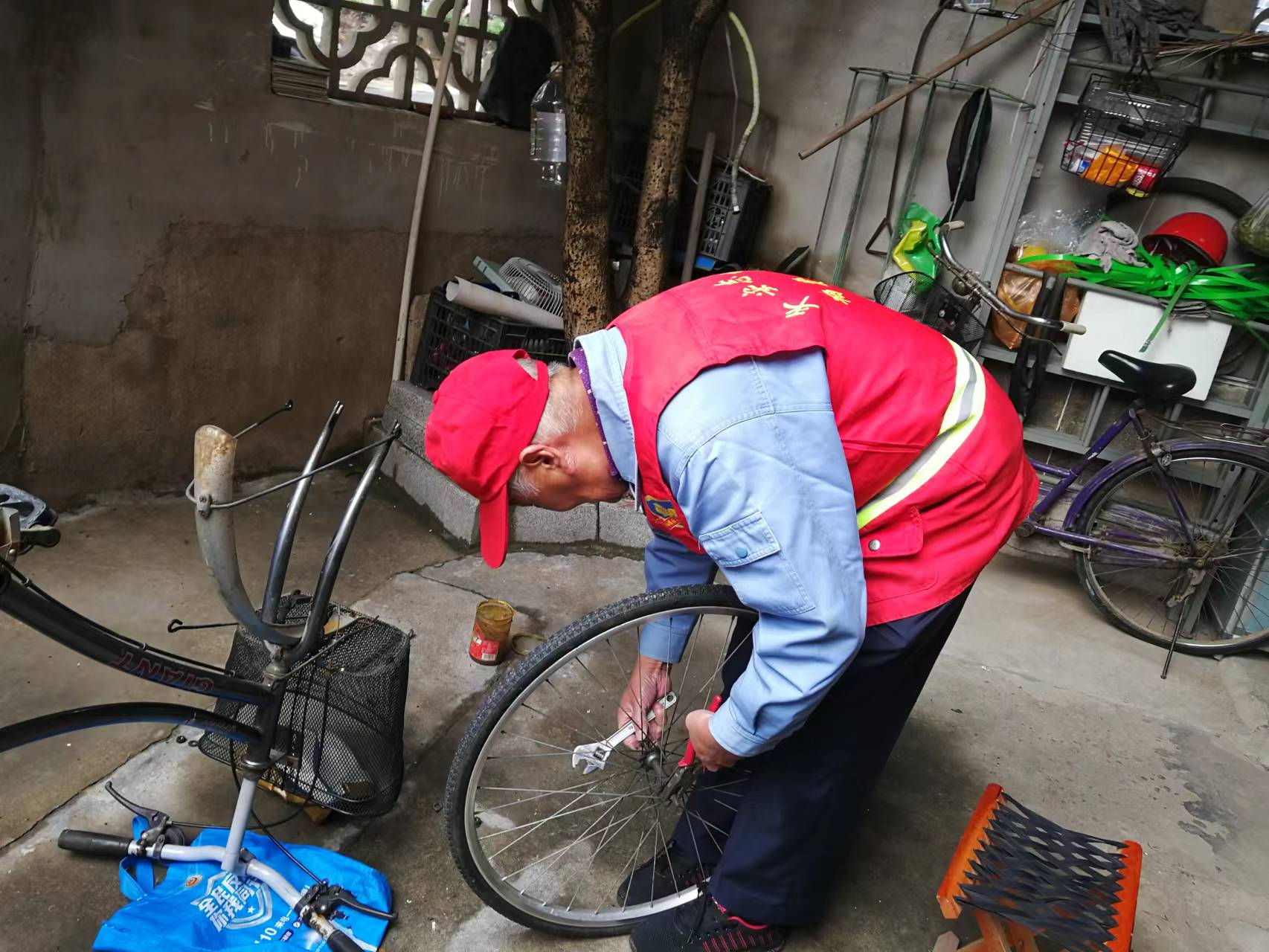 退休老党员们逐一走访辖区内的独居老人,帮助老人维修自行车、打扫卫生、洗晒衣物等;还陪老人们谈心聊天,嘱咐他们天气转凉,要注意保暖。