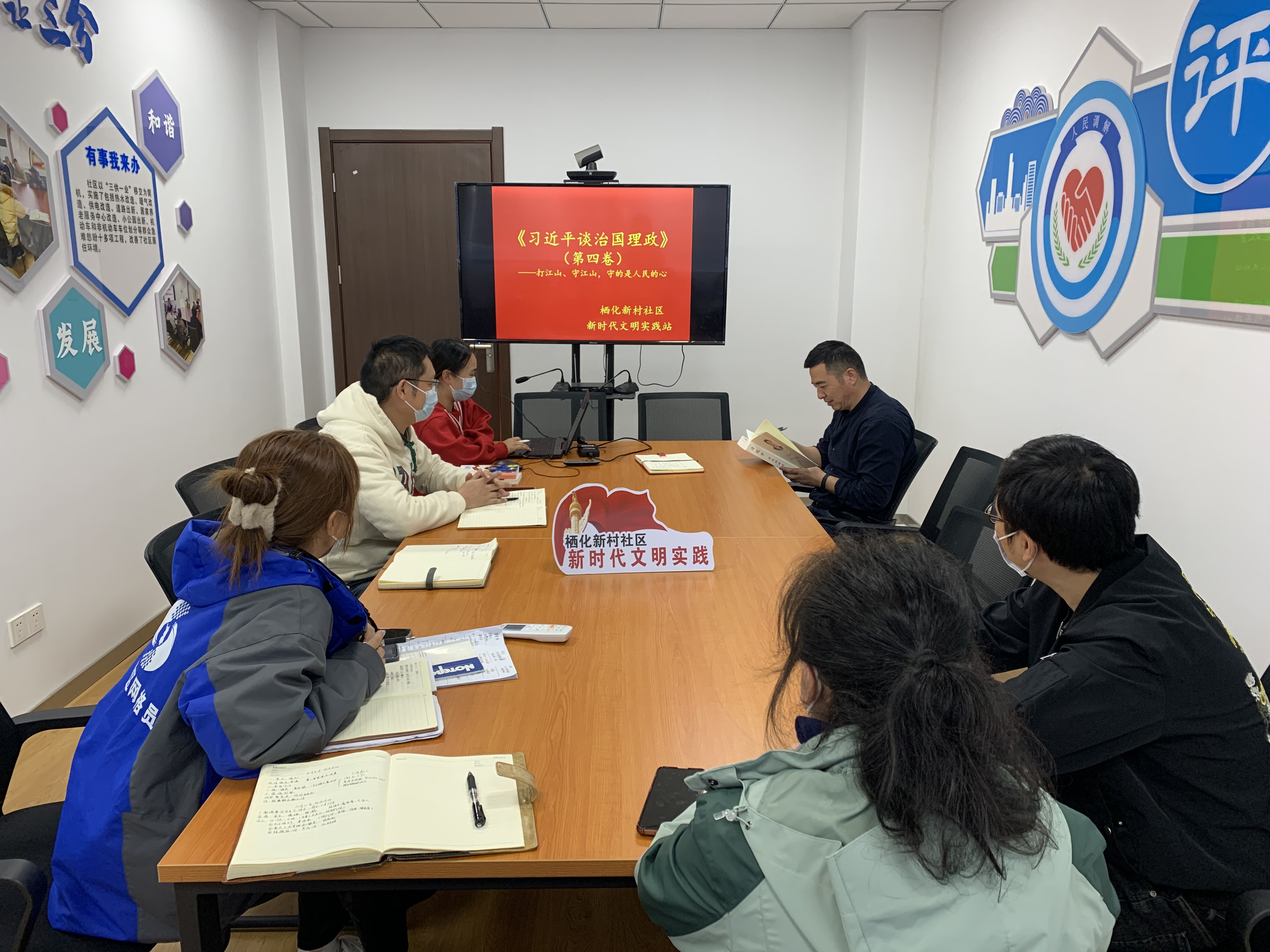为深入学习贯彻习近平新时代中国特色社会主义思想,积极推进“强国复兴有我”群众性主题宣传教育活动。10月10日,栖化新村社区两委班子集中学习《习近平谈治国理政》第四卷——打江山、守江山,守的是人民的心,引导大家团结奋斗、勇毅前行,以实际行动迎接党的二十大胜利召开。