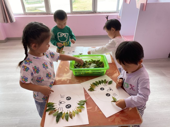 在听完老师的讲解后,幼儿们明白了树叶有不同的颜色是因为有叶绿素的存在,树叶进行光合作用,叶子便可以有各种不同的形状、大小、颜色和质感。