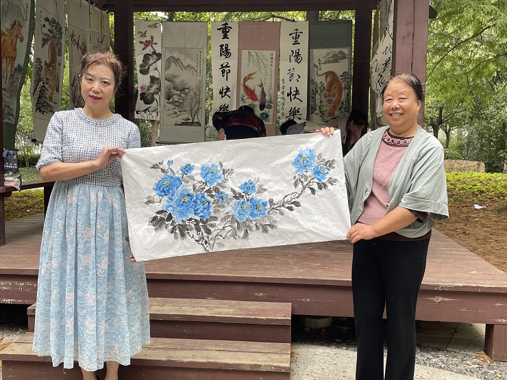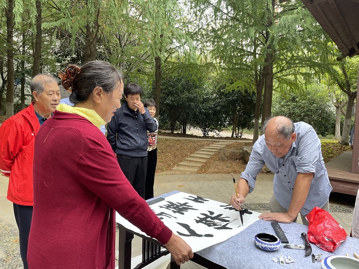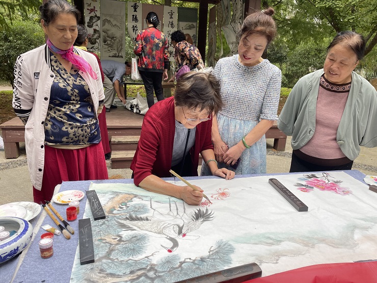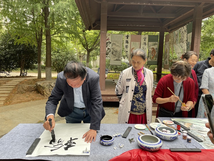 活动现场,各位书画爱好者挥毫泼墨,相互切磋技艺,一幅幅技艺精湛、韵致生动的作品从大家笔下流畅而出,一张张浓郁艳丽的水墨画,呈现在大家眼前。墨香满园,大家纷纷被书画作品深深吸引住。