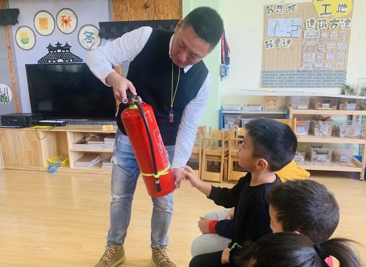 老师教小朋友们,当地震、洪水、雷电、台风等自然灾害来临时,如何正确应对。还带领小朋友认识灭火工具,介绍了灭火器的使用方法,火灾来临时,迅速逃离火灾现场并拨打119报警电话:按照疏散指示标志,快速有序疏散,一定要捂住口鼻,弯腰小步快走,迅速逃离火灾现场。最后还讲解了疫情防控常识,告诉小朋友们要勤洗手,戴口罩,少聚集,常通风,公共场所要少去,发现患者即隔离,人受感染早就医。