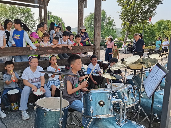 近日,桦墅村教育中心组织村内青少年儿童在周冲村表演架子鼓节目,表演队经过刻苦训练,为村民及游客们献上了一场场精彩纷呈的表演。参与表演的桦墅娃娃们小到5岁,大到13岁,他们都全情投入,热血沸腾,演奏了多首爱国歌曲,向在场的人群献礼,向家乡献礼,向伟大的祖国献礼!