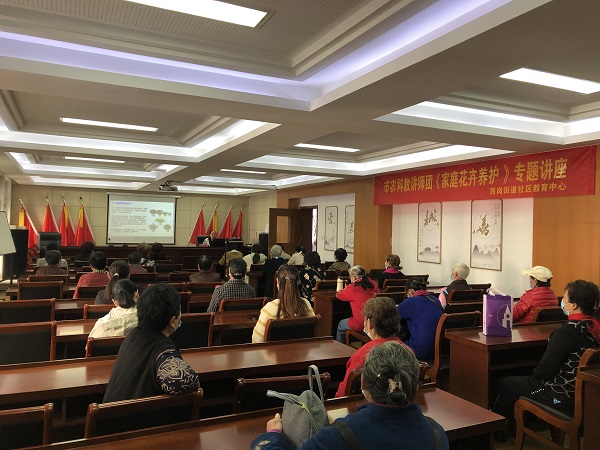 4.讲座内容详实,居民积极互动。居民卢阿姨说:“我是个爱养花的人,但却是“养花杀手”,听了老师的讲授,才发现自己进了很多误区。有了专业老师提供的养花技巧,一定可以把花养好了。”居民们把自家日常养花生活中遇到的问题、困惑向老师请教,相互分享养花的心得,现场气氛热烈。