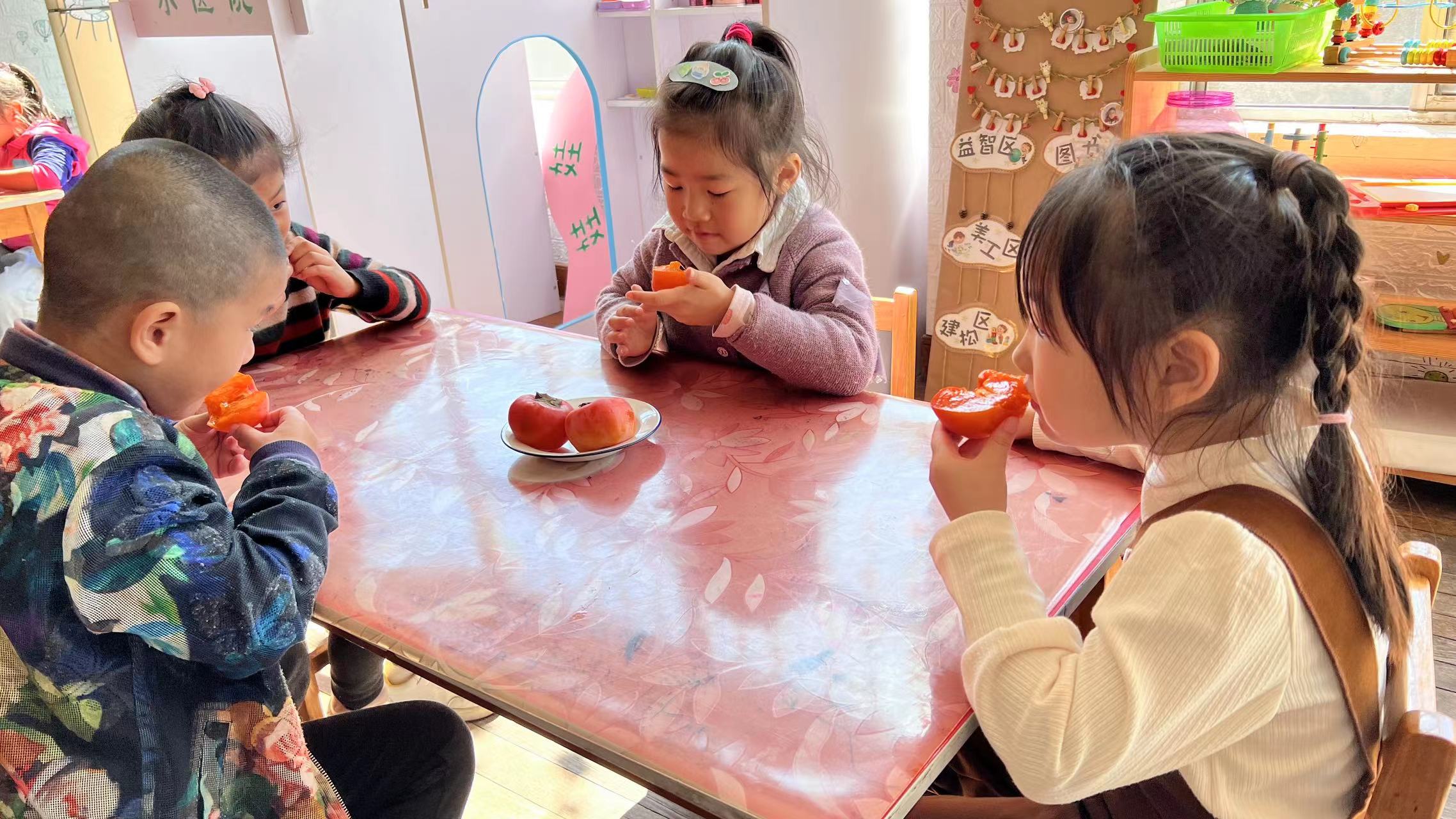 首先,党员志愿者带领孩子们来到园中,让大家观察柿子的形状及颜色,并向大家耐心讲解柿子的食用功效和注意事项。随后,大家又回到班级中,根据自己的观察和想象,动手制作黏土柿子。不一会儿,一个个橘红橘红的柿子便完成了。最后,大家还将亲手摘下的柿子洗净,一同品尝果实的香甜。