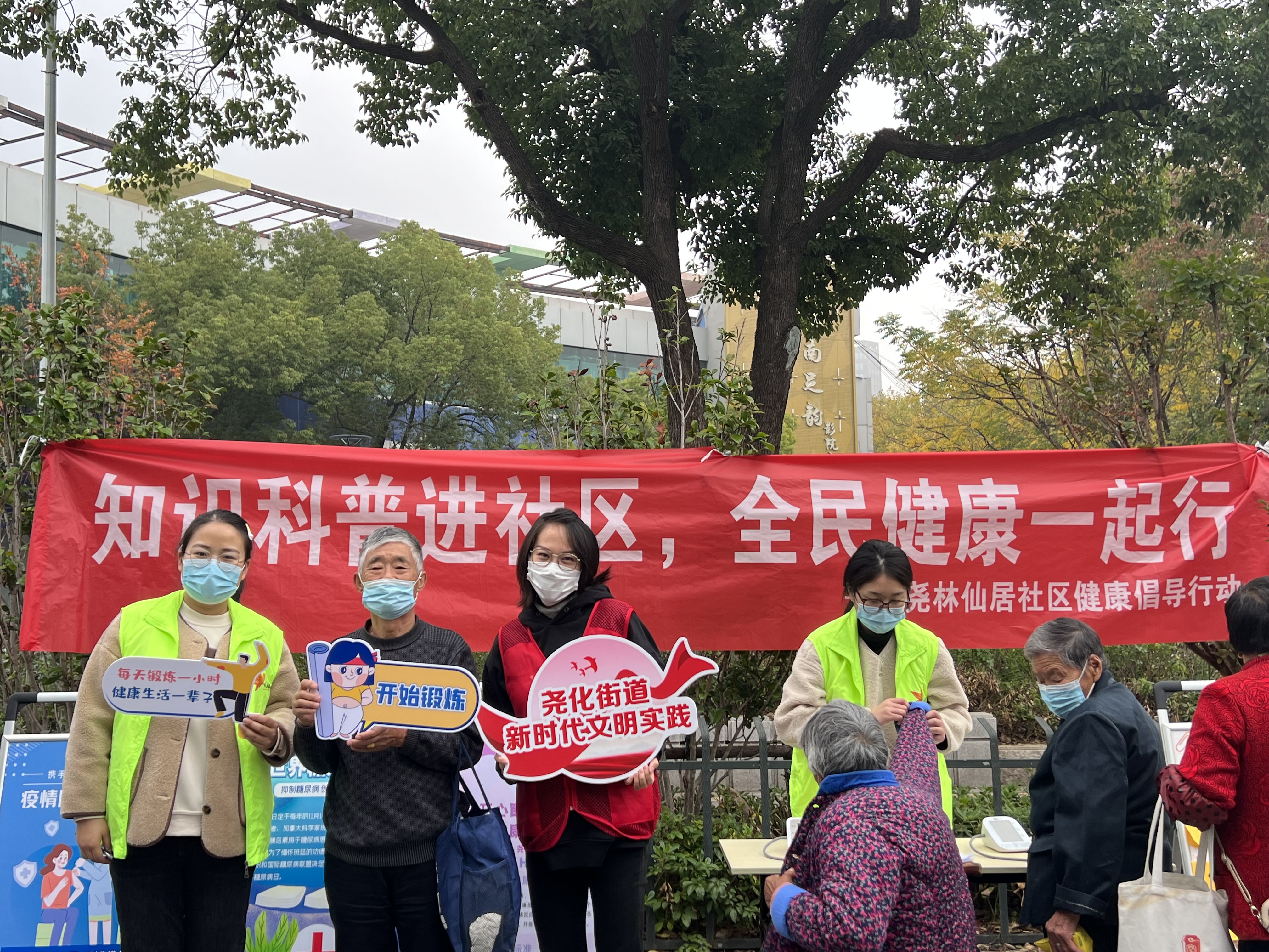 为宣传健康生活观念,科普健康知识,提升居民自我保健意识,营造健康、和谐的社区氛围,11月23日上午,在尧林仙居社区新时代文明实践站联合枫情关爱服务中心在社区小广场开展社区健康倡导行动。