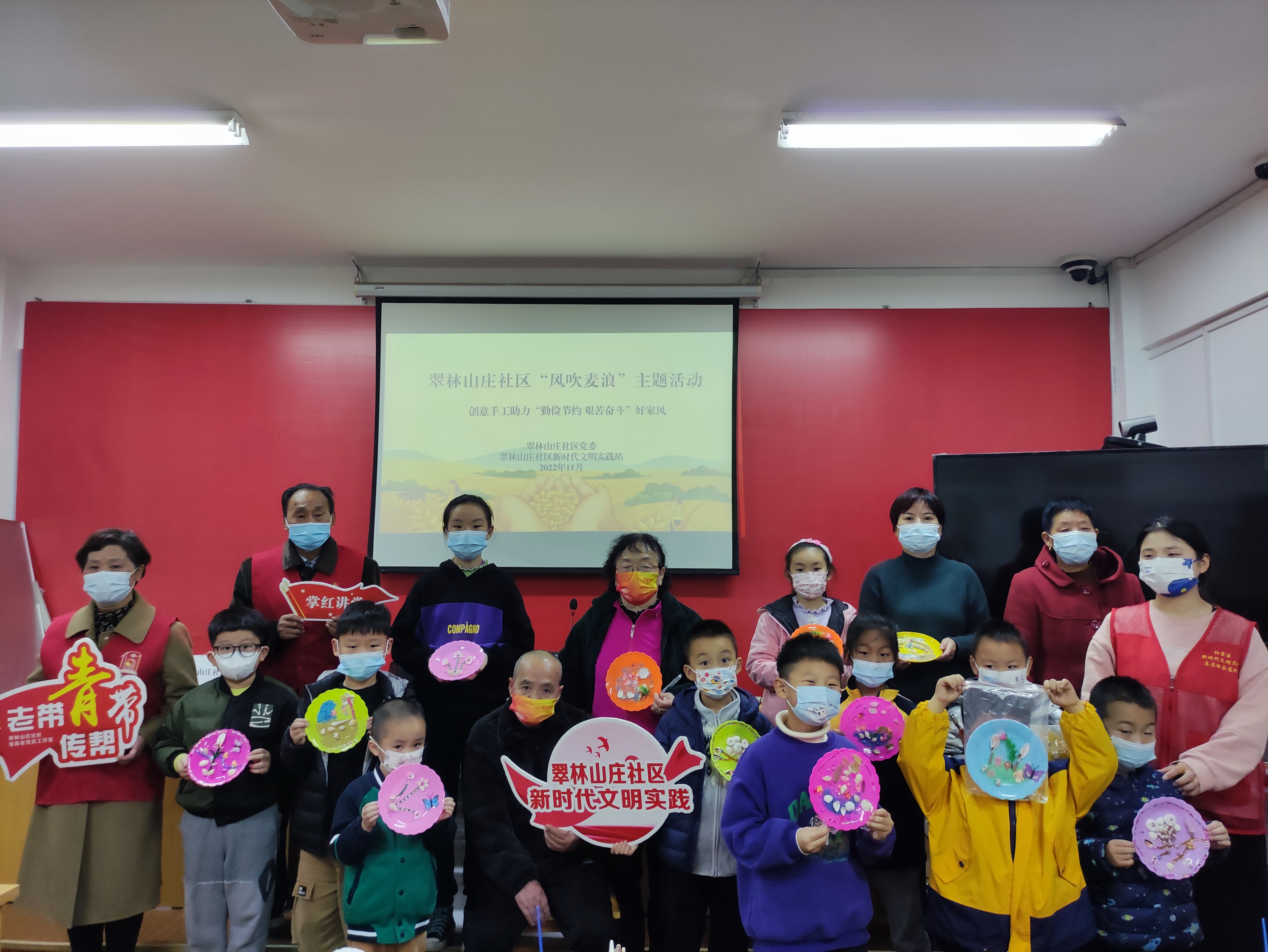 翠林山庄社区开展“风吹麦浪”主题创意手工活动,邀请辖区老党员、青少年及家长齐聚一堂,倡导培养勤俭节约好家风。
