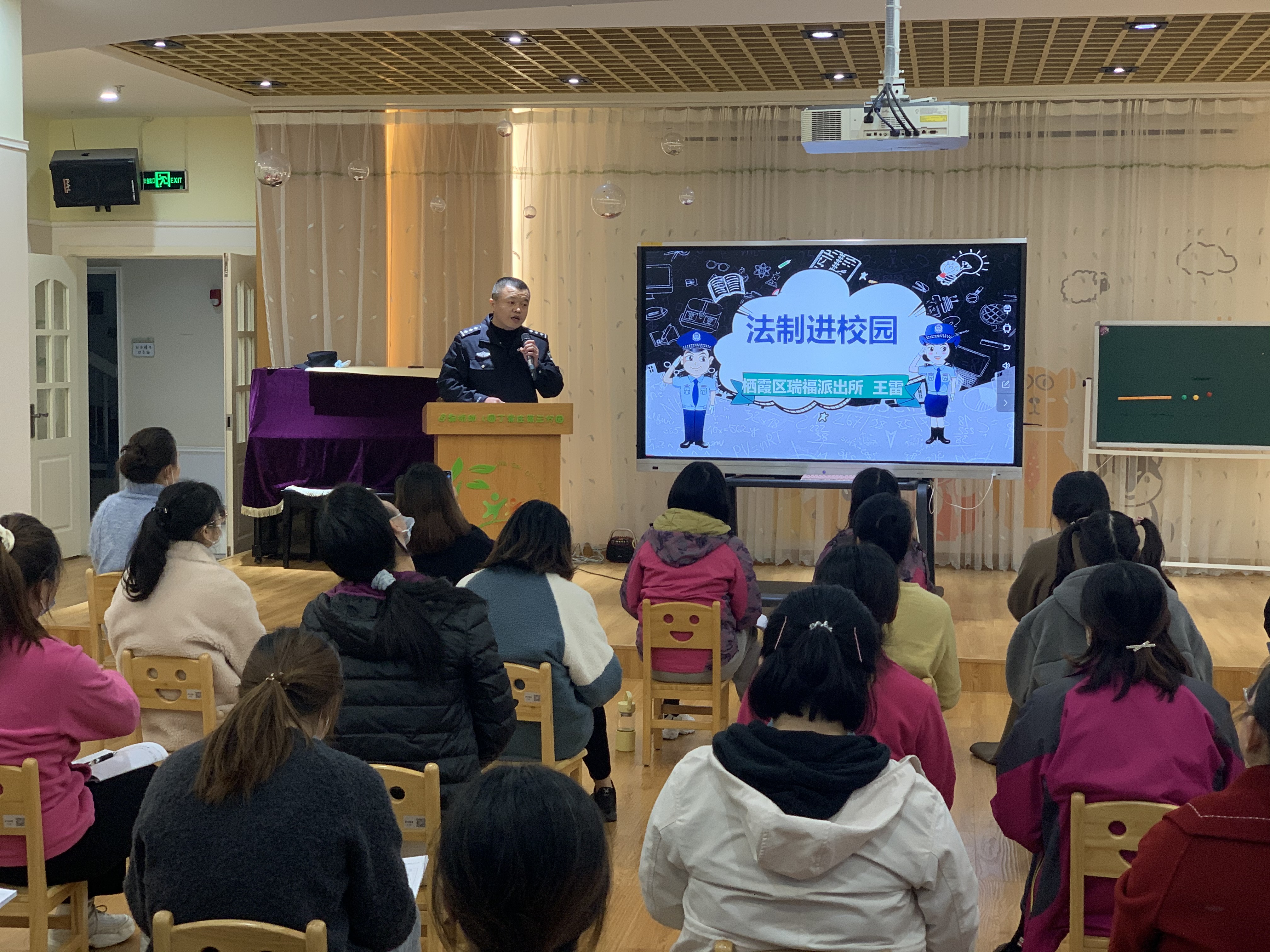 为构建平安和谐的校园育人环境,提升学校老师的法治观念和消防安全意识,同时也为了进一步发挥党员的先锋模范作用,调动党员参与平安建设的积极性,11月23日,迈皋桥街道秋韵园社区党支部组织红韵党员志愿服务队,联合迈皋桥街道瑞福派出所、迈皋桥街道幼儿园丁家庄第三分园,共同开展“党建引领普法宣传,护航校园平安发展”法治宣传活动,为三幼的全体教师带去了一场丰富多彩法制讲座。