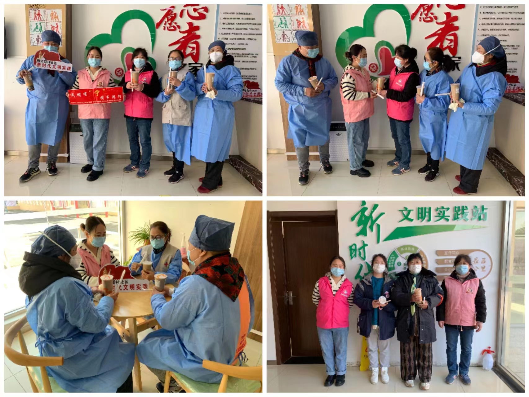 凛冽冬日里,区妇联工作人员一边将一杯杯热奶茶送到志愿者们手中,一边对志愿者们勇于担当、无私奉献的抗疫精神给予肯定,鼓励他们保持昂扬斗志,并在全身心投入疫情防控工作的同时,加强自我防护,佩戴好防护用品,严格落实各项防疫要求和操作流程。
