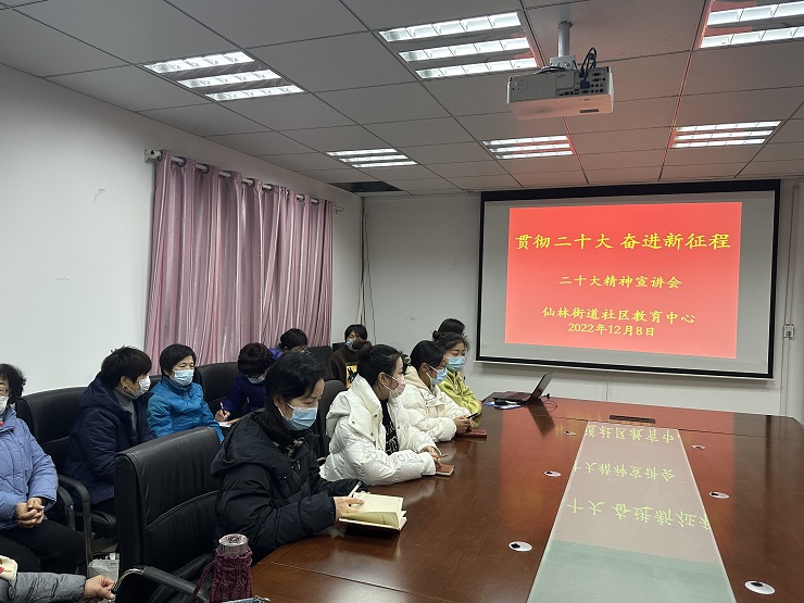 为学习好、宣传好、贯彻好党的二十大精神,12月8日,仙林街道社区教育中心联合仙龙湾社区开展了二十大精神宣讲活动,特别邀请了区委组织部常务副部长王宇峰给大家进行宣讲。