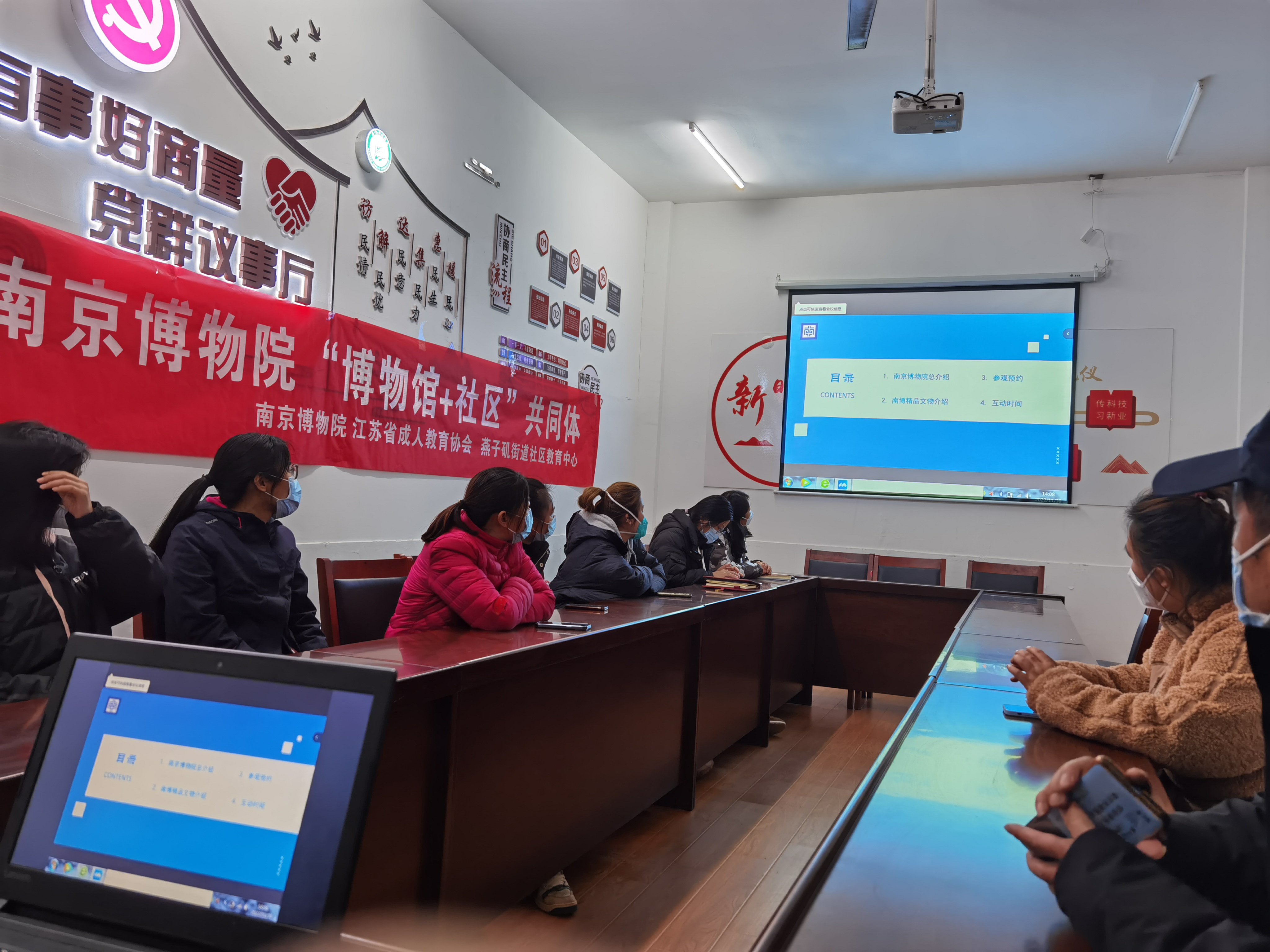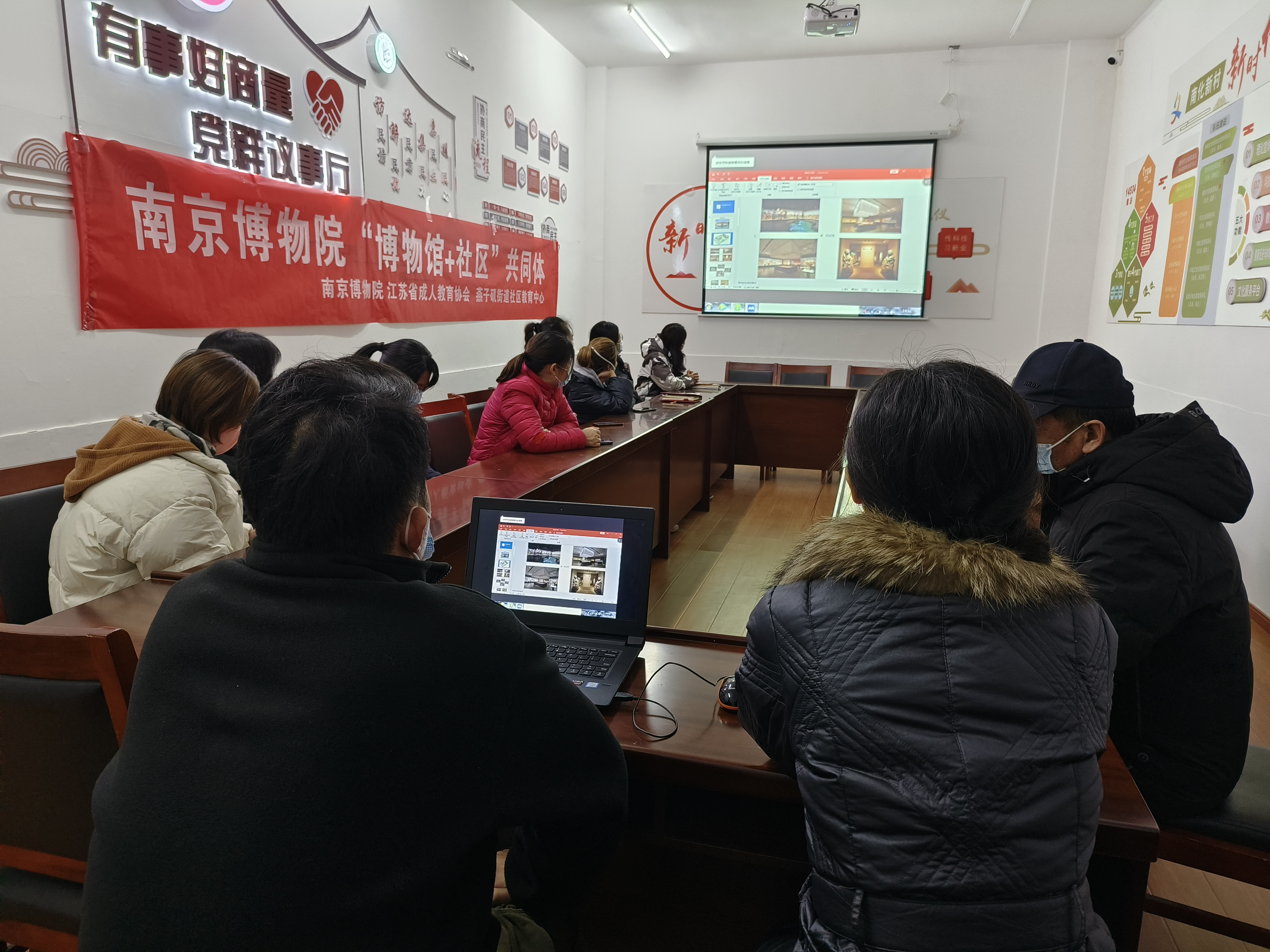 “博物馆+社区”共同体活动,是由南京博物院、江苏省成人教育协会主办、燕子矶街道社区教育中心承办,依托南京博物院的展览及文物资源,此次活动由南京博物院李瑶老师为居民线上介绍南京博物院的相关文化。活动开始,李老师首先为居民介绍了南京博物院的历史,让在场的居民能对南博有一个基本的了解,随后,通过观看视频的方式为居民介绍了鎏金铜犀牛,四季牧牛图,陶牛车,铜牛灯,犀牛望月铜镜还有犀尊等博物院展出物品。最后,还教居民如何在手机上预约参观活动。在场居民纷纷表示,今后一定要通过预约去南京博物院实地参观学习一次。