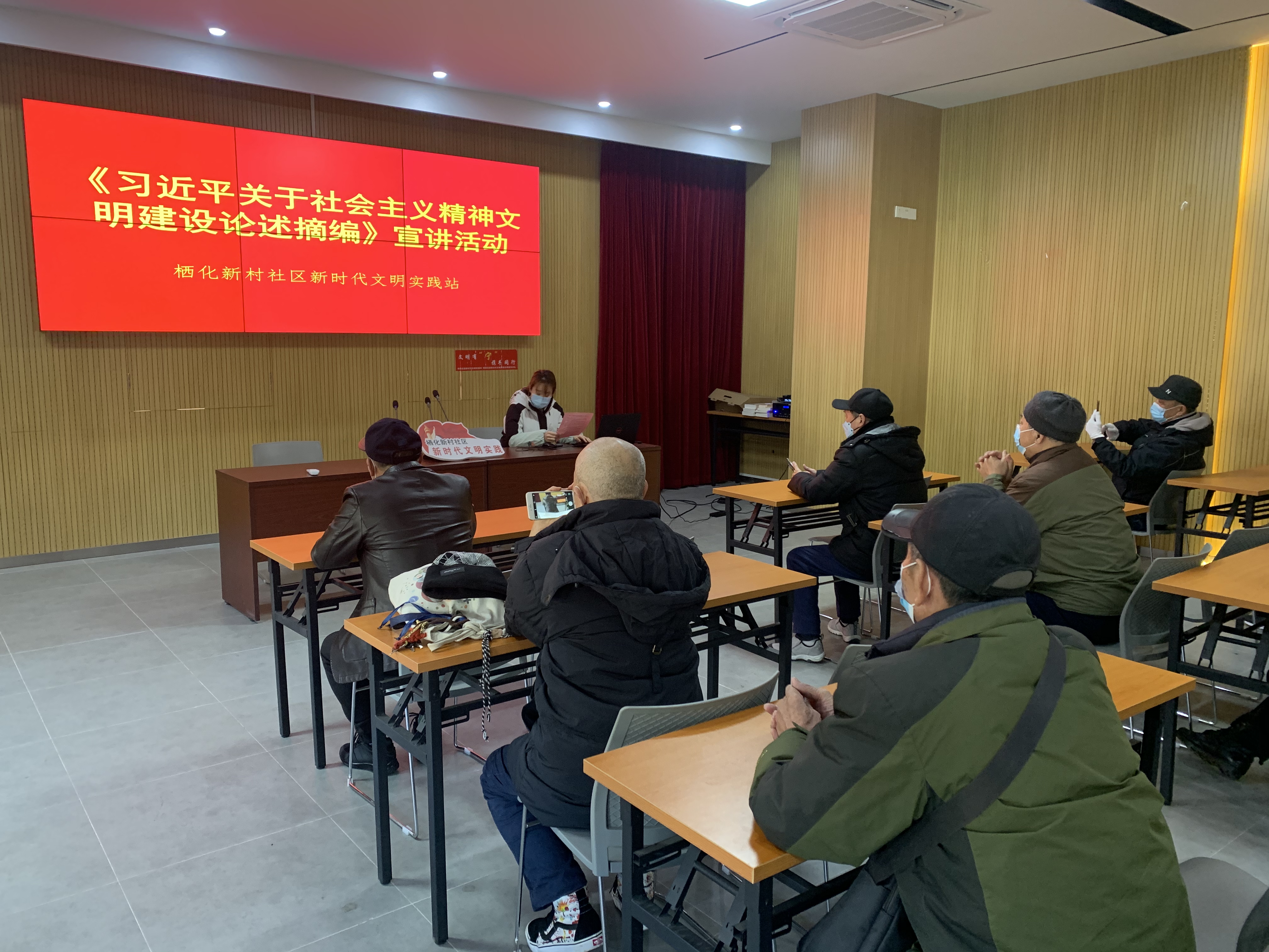 12月14日,栖化新村社区居民学校联合社区新时代文明实践站开展《习近平关于社会主义精神文明建设论述摘编》宣讲活动。