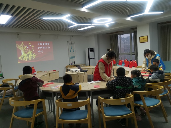 2月13日下午放学后,孩子们就在家长的陪同下,早早地来到社区新时代文明实践站,急切地等待着大学生党员志愿者给他们讲故事。四点半,红色故事汇正式开始。从一个个红色小故事中,孩子们了解到雨花台英雄七人的无私奉献、渡江战役解放军的不怕牺牲、长江大桥建设工人的迎难而上、南京大屠杀时的举国哀痛......稚嫩的孩童瞪大了眼睛,听得津津有味,虽然还不能明白究竟什么叫革命烈士,也不能明白为什么孙中山先生宁愿饿肚子也要花钱买书看,但是志愿者相信红色故事犹如涓涓细流,将会悄悄浸润孩子们的心田。
