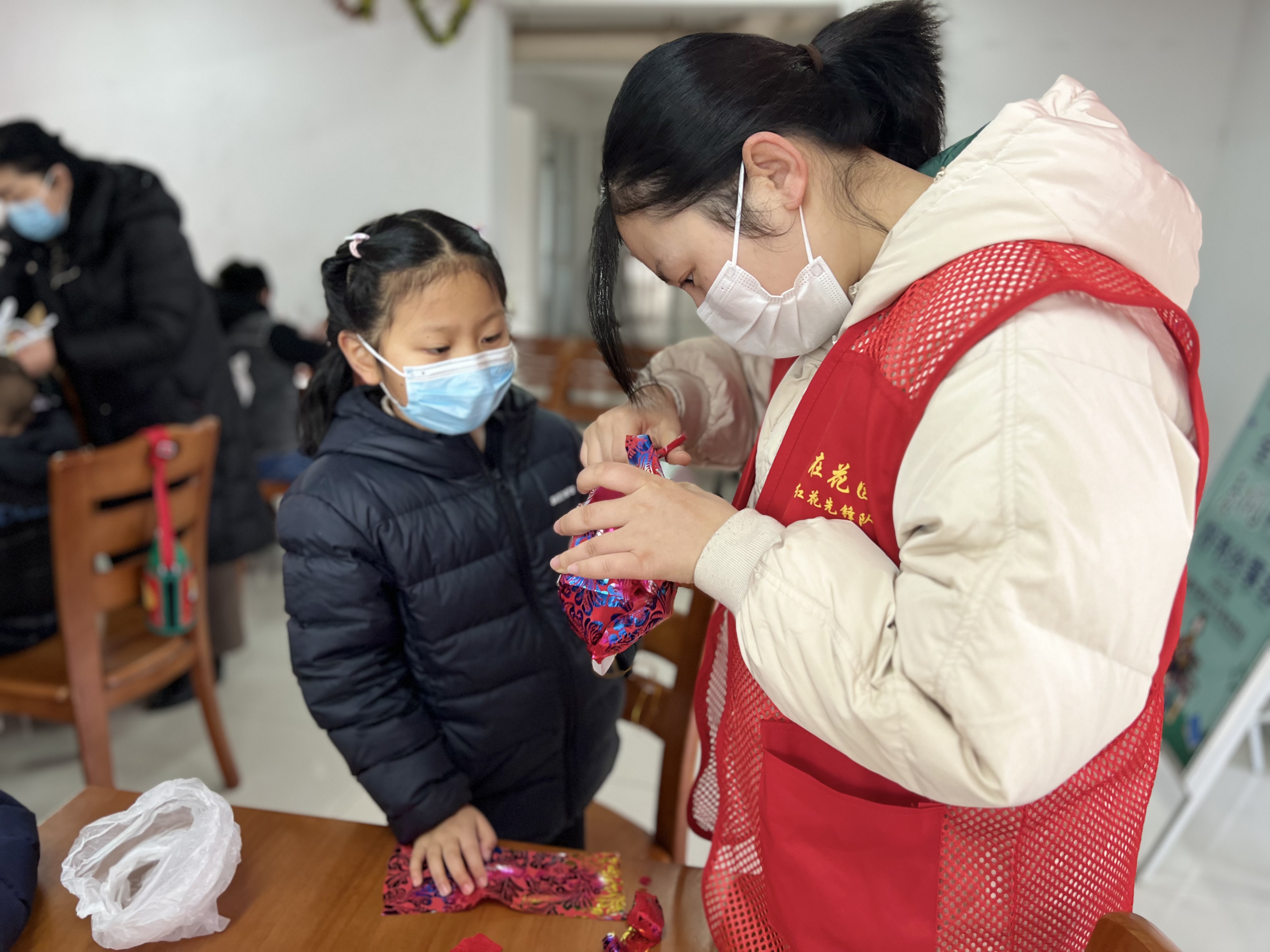 紧接着,志愿者为大家认真讲解了元宵节的由来,普及了灯笼的起源及寓意,并现场发放了花灯的制作材料,向大家演示花灯的制作步骤及注意事项。在志愿者的帮助下,大家相继制作出了一盏盏寓意吉祥的花灯。青少年们也在实践过程中了解到了传统工艺文化小知识,感受传统文化的魅力,他们拿着亲手制作的花灯高兴地相互展示,烘托浓浓的节日气氛。
