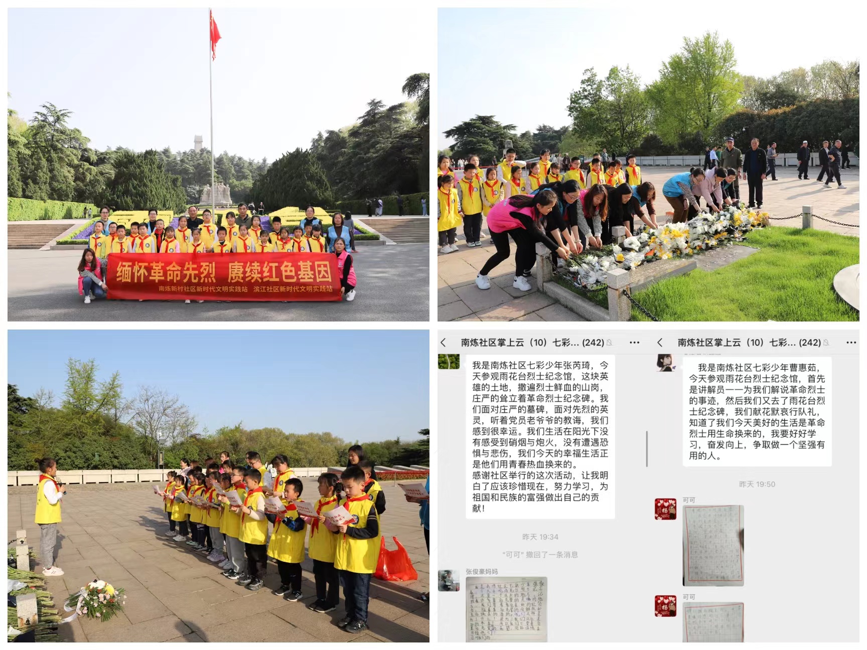 “我们如今的美好生活来之不易,希望所有的‘七彩少年’好好学习,树立远大理想,用努力奋斗的青春回报社会、报效祖国,拥抱七彩未来……”为传承红色基因,厚植爱国情怀,4月9日,栖霞区栖霞街道南炼新村社区居民学校组织社区老党员杨适、李成顺牵手“七彩少年”一起来到雨花台烈士陵园缅怀先烈,筑牢理想丰碑。