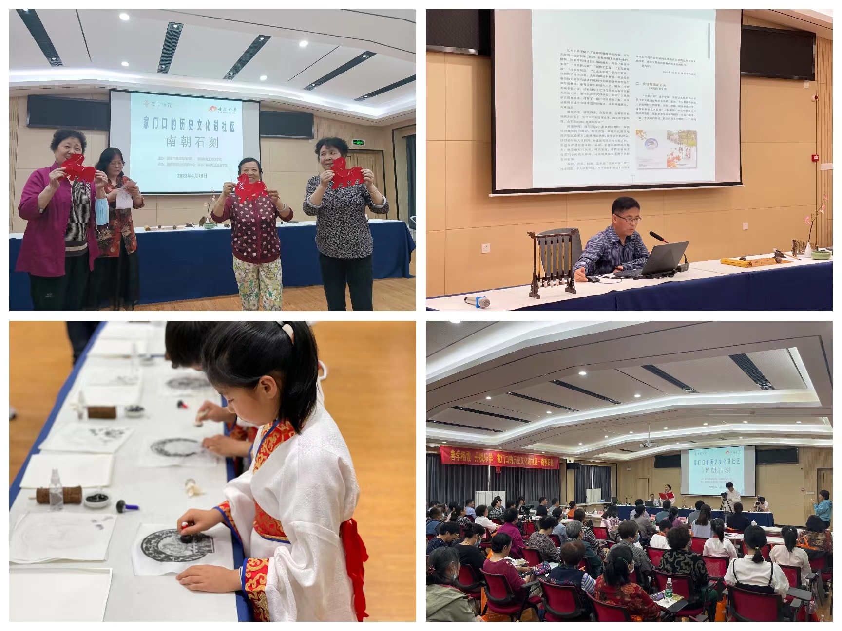 活动过程中,专家向居民讲解南朝石刻的文化历史经纬,了解石刻的文化全景现状,现场孩子们也展现出高昂的兴趣热情,通过石刻拓片体验南朝石刻的文化艺术魅力,最后居民朋友们亲自动手剪纸辟邪,现场氛围其乐融融。
