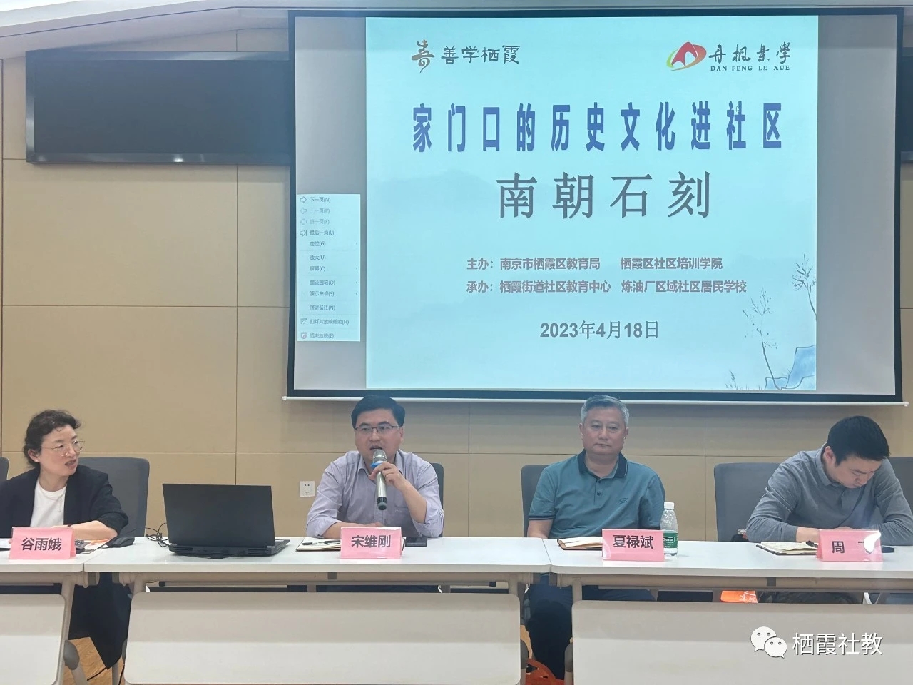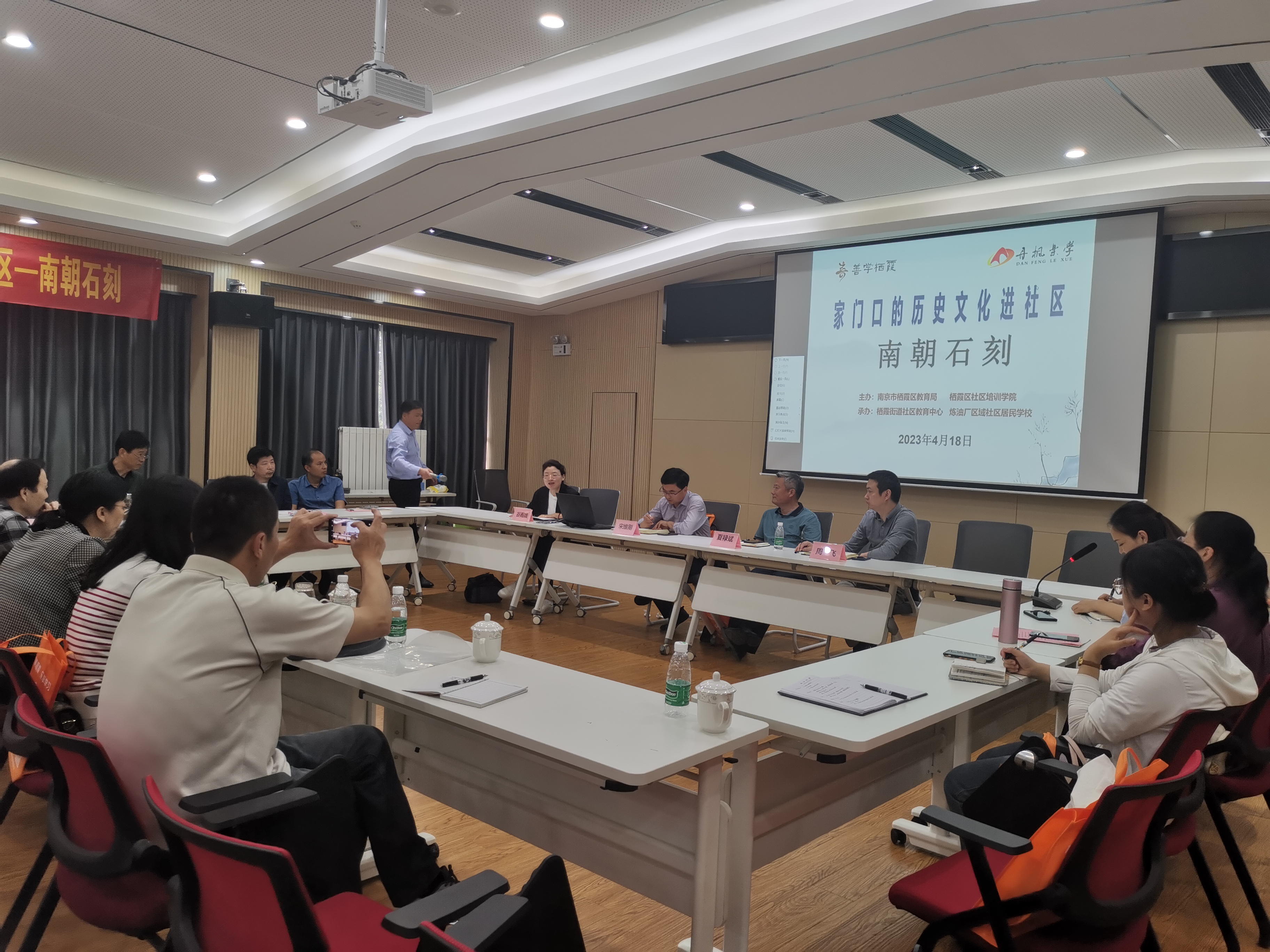 为了促进教师队伍专业化发展,栖霞区连续多年组织开展社区教育观摩活动。2023年4月18日下午,观摩活动首站在栖霞街道南炼社区党群服务中心拉开帷幕,活动以“家门口的历史文化进社区—南朝石刻”为主题,旨在挖掘栖霞区区域文化内涵,让社区居民对家门口的历史文化遗迹有更加深入的了解,增强社区居民对栖霞街道深厚文化底蕴的认同,增强居民保护文物的意识。
