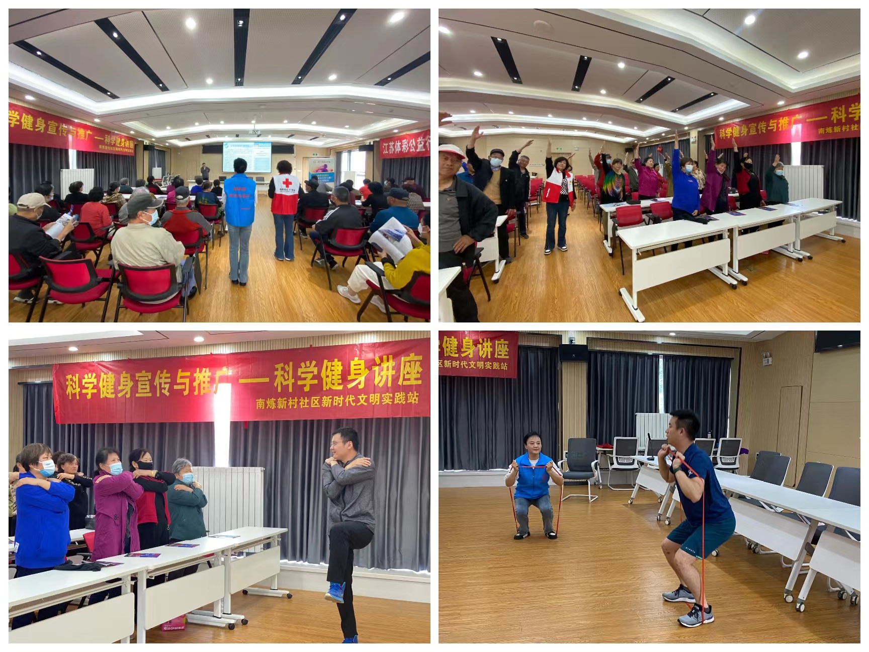 南炼新村社区一直把追求文明健康作为新风尚,活动现场,主讲老师不仅向广大居民讲解健身知识,推广健身方法,普及科学健身理念,同时还倡导居民“锻炼一小时、健身一小时、开心一小时”,养成健身的良好习惯,以自身行动支持和推动社区全民健身事业发展。