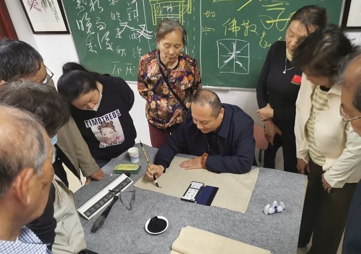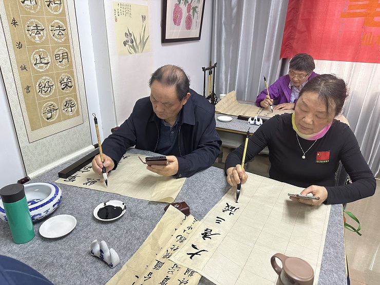 最后,到场的社区书画爱好者,纷纷拿起毛笔书写自己对书法的热爱和追求。大家互相交流书写经验、评点书画作品,体味书写中的坚持和快乐。书画进社区活动吸引了居民的欣赏,大家纷纷对该活动表示赞赏。这次活动不仅普及了书画艺术,为仙林街道文化阵地建设增添了光彩,也为社区居民提供了一份更有文化内涵的精神食粮。