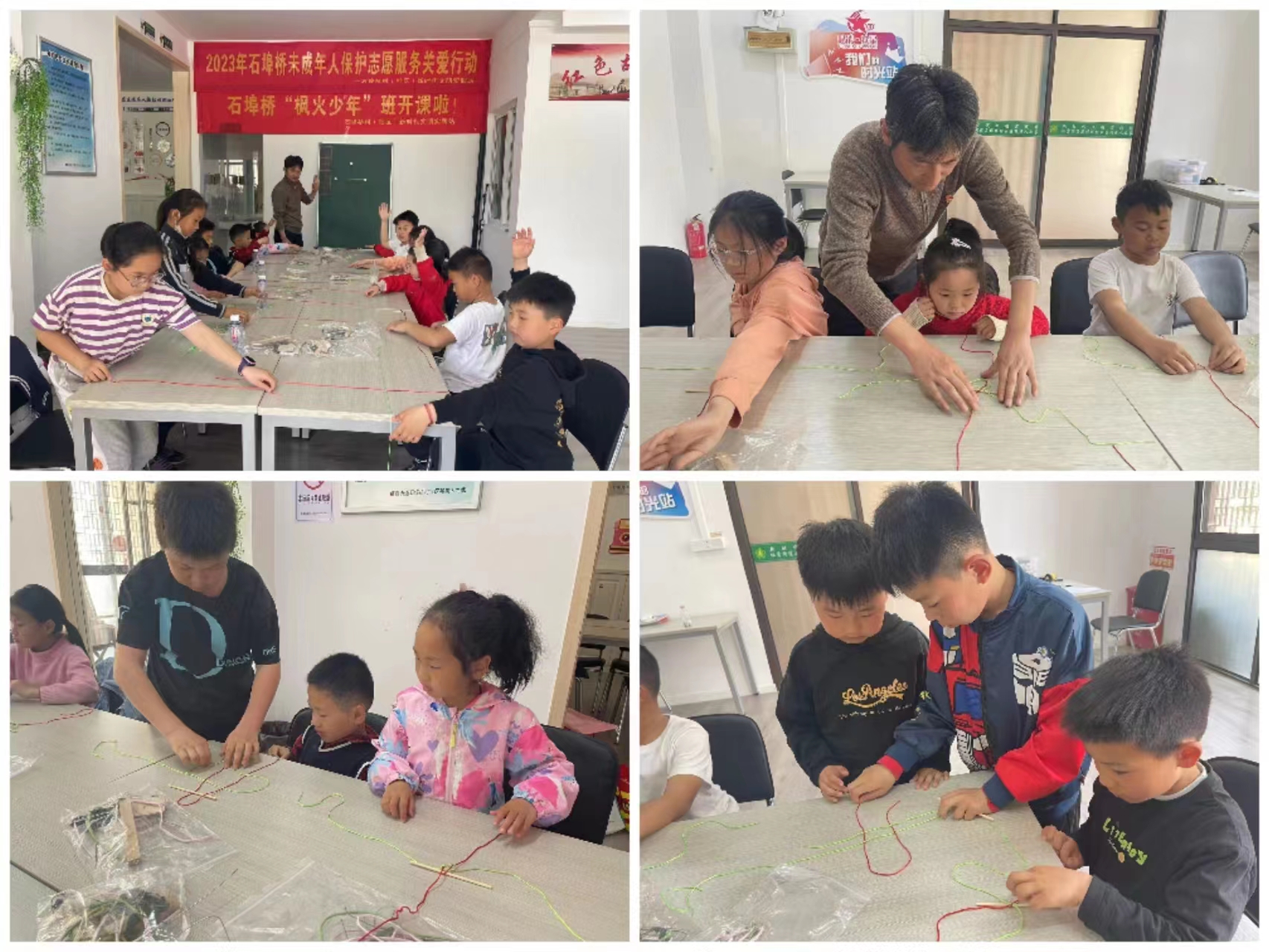 活动中,指导老师首先给孩子们讲解了中国结的寓意,传授了中国结的编织手法。中国结看似简单,编织却较为复杂,两根线绕来绕去需要足够的耐心和细心。志愿者则老师边讲解边编织,手把手教大家如何将中国结绕绳、打结,直到大家都弄懂为止。孩子们认真打结、编花,线绳在手指间跃动。不一会儿,中国结的雏形就呈现在眼前了。