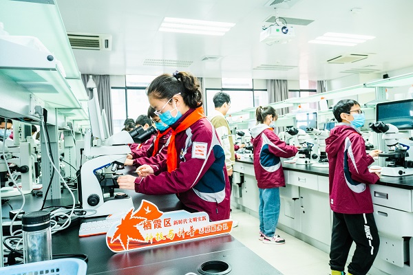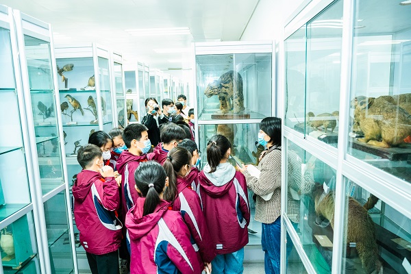 随后同学们跟随南大志愿者进入生命科学学院参观,学习国家基础实验室的内容,同学们在实验室中聆听了南大优秀教师的事迹,参观了标本实验室中消失的动物做成的标本,动手实践了用显微镜查看微生物标本。这里是将图书馆的理论知识与实践结合起来的地方,让同学们了解到,知识是实践的基础,实践是知识的体现。