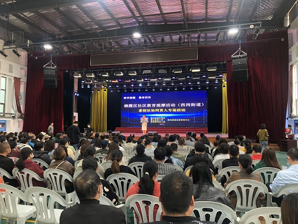 本次社区教育观摩活动分三个环节,内容紧扣主题,层层推进。第一部分观看由摄山星城小学师生共同表演的情景剧“榜样”,家庭教育是孩子最初获得教育的地方,对孩子一生的成长、发展有着最根本的影响,家长是孩子的榜样,在教育中起到潜移默化的作用。