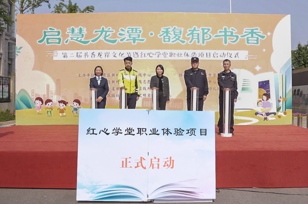 “本届活动的主题是‘馥郁书香涵养文明气质,启慧龙岸厚植精神沃土’,我们邀请了社区的居民党员以及周边学校的学生共同参与,这对于推进精神文明建设具有积极意义。”龙潭街道龙岸花园社区党委书记王宇介绍,活动当天,龙岸花园社区红心学堂2.0职业体验项目也同步启动。“其实早在几年前,我们就开展过红心学堂的工作,但过去相对比较零碎,今年我们对活动进行了系统化的归纳和整理,邀请孩子们前往消防队、城管等单位,增加孩子们的知识,让孩子们参与到社区的管理工作中来。”