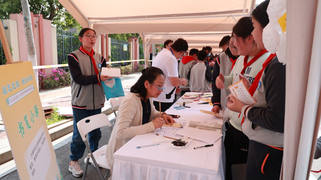 舞台旁,一连串文化“好戏”引得孩子们兴趣盎然,龙潭街道新时代文明志愿者给孩子们发放了富有特色的全民阅读书签,倒糖影儿、民俗草编、旧书驿站、龙岸书斋等文化“摊位”有趣的同时也丰富了孩子们的文化世界。