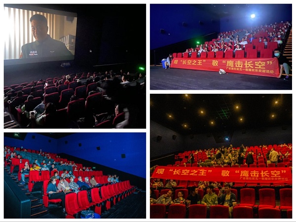 观众们在万达影城共同观看了《长空之王》这部电影。电影以中国隐身战斗机研发过程为背景,展现了中国空军试飞员和试飞工程师们为了研发出中国自己的战斗机而经历的艰辛和挑战。