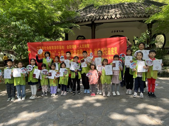 人间最美四月天,孩子们不负春天画春天,游学栖霞打卡桃花扇亭画扇亭。快乐的时光总是很快过去,大家带着团扇绘画作品一起合影留念,留下记忆,留住美好!