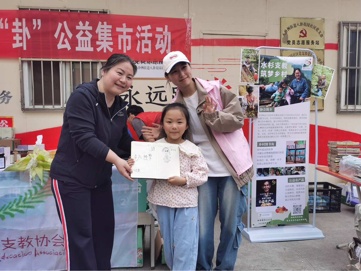 活动现场,气氛热烈,八卦花园社区居民将家中符合图书角项目捐赠标准的旧书捐赠给水杉支教协会,让闲置的书流动起来,让知识与温暖在爱的手中传播。捐赠图书的热心居民还主动在书上写上爱心寄语,助力孩子们快乐阅读,健康成长,愿承载着爱心的书籍在不断的传承中继续播撒知识的芳香。爱心助农产品的临时销售摊点前,前来咨询的居民络绎不绝,“这是我们来自大凉山的高原山核桃油,拥有丰富的DHA……”现场志愿者向居民介绍助农优质农产品,来自八卦洲的爱心企业纷纷慷慨解囊,现场的优质农产品在短时间内一售而空。